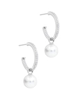 Gift Packaged 'Noemie' Rhodium Plated 925 Silver & Freshwater Pearl Hoop Earrings