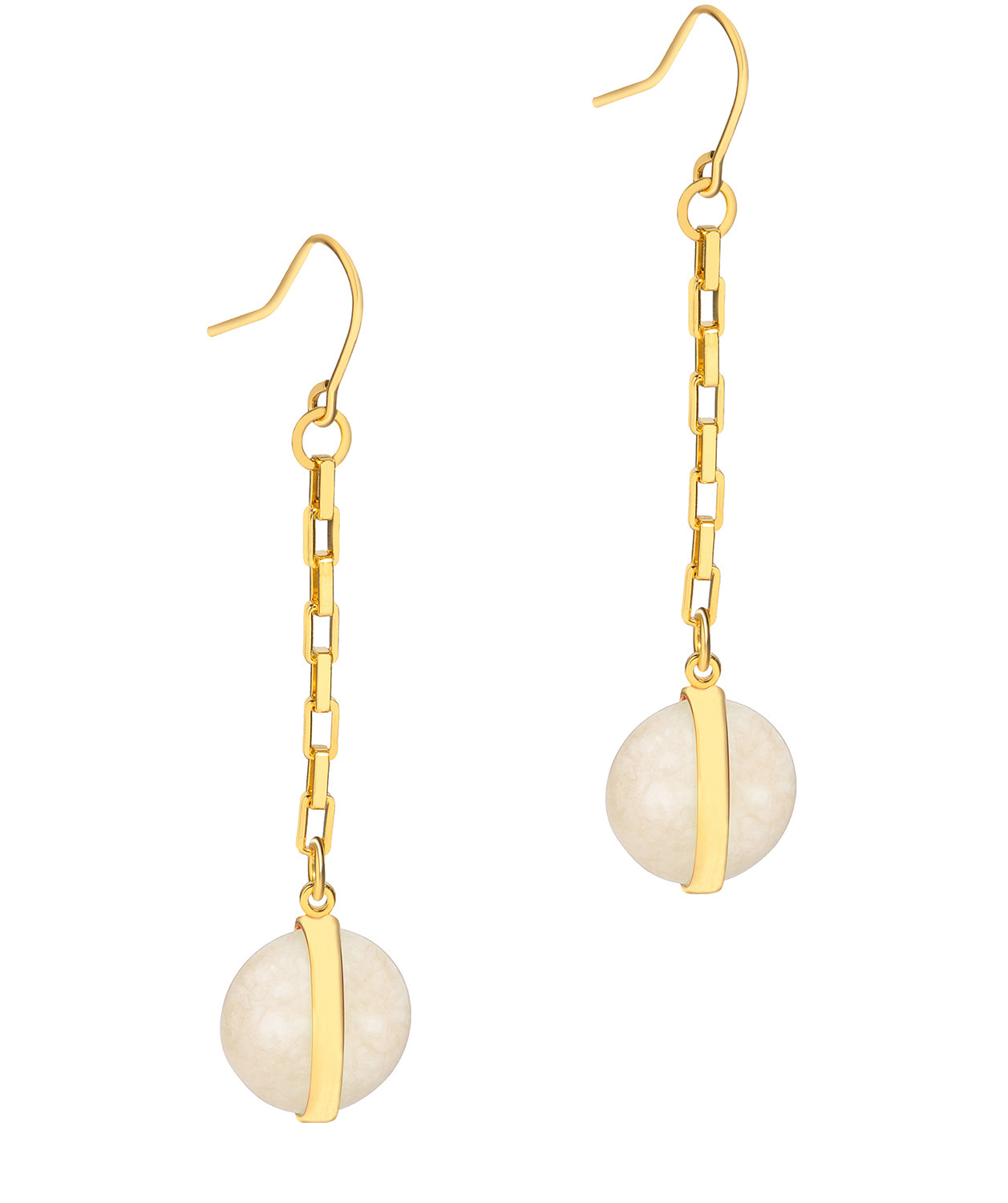 Gift Packaged 'Perdita' 18ct Yellow Gold Plated 925 Silver & Cream Gemstone Drop Earrings