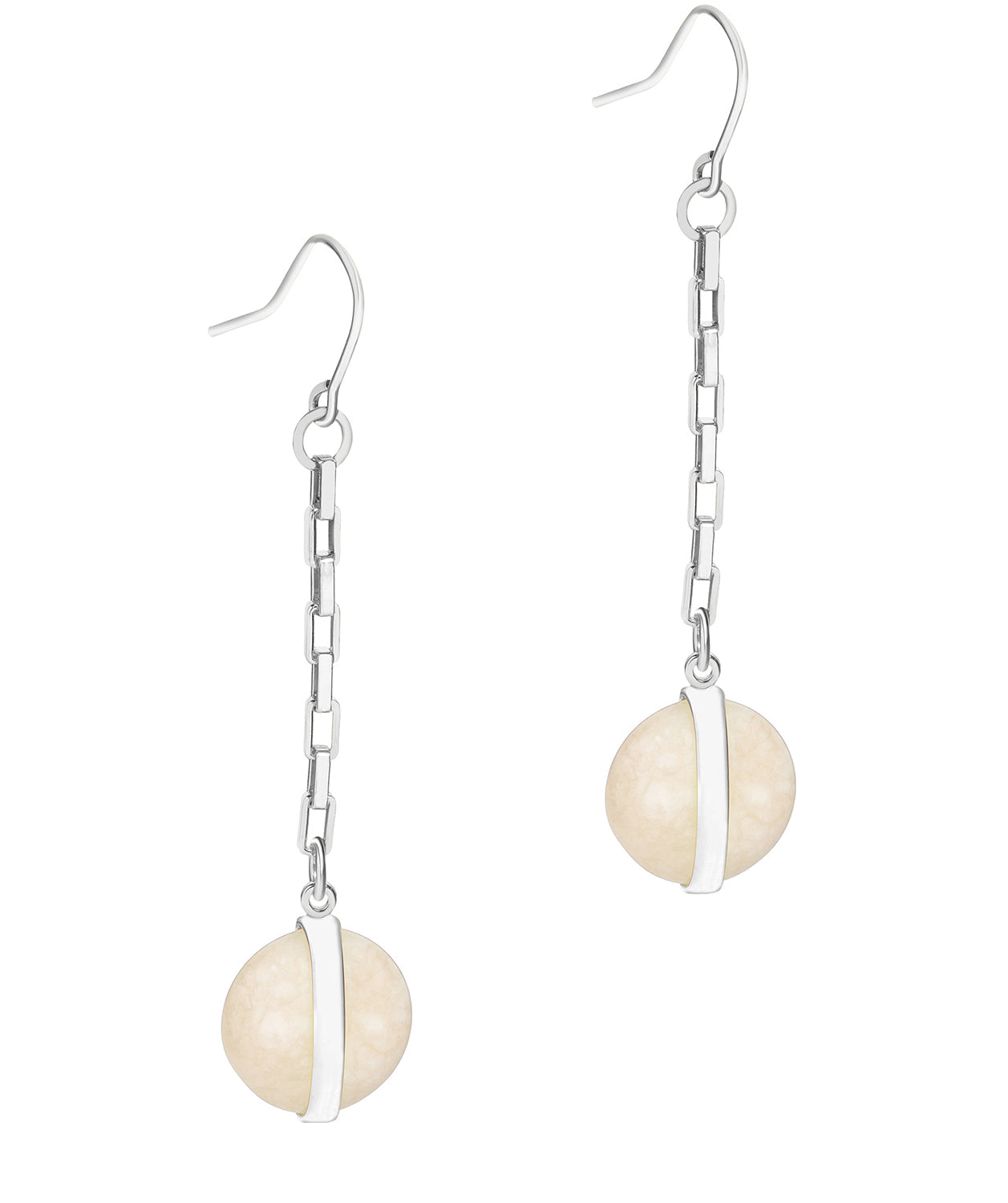Gift Packaged 'Perdita' 925 Silver & Cream Gemstone Drop Earrings
