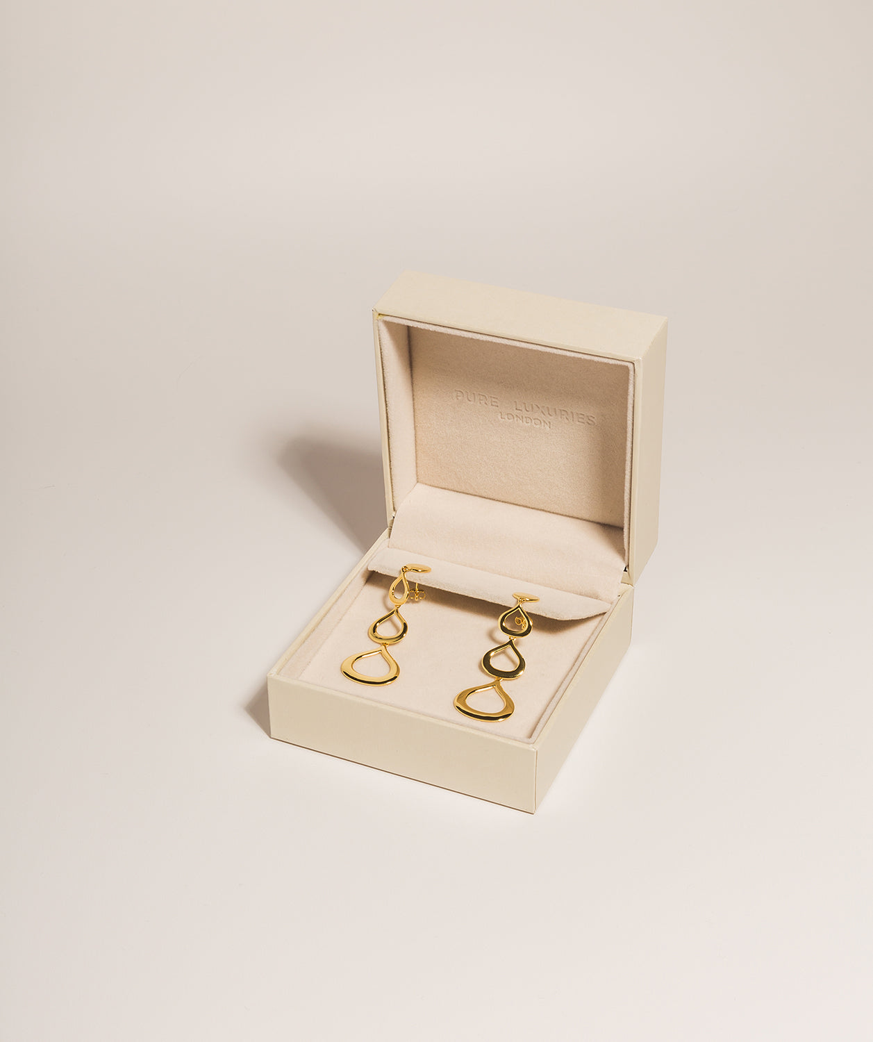 Gift Packaged 'Samara' 18ct Yellow Gold Plated 925 Silver Cut-Out Raindrop Drop Earrings