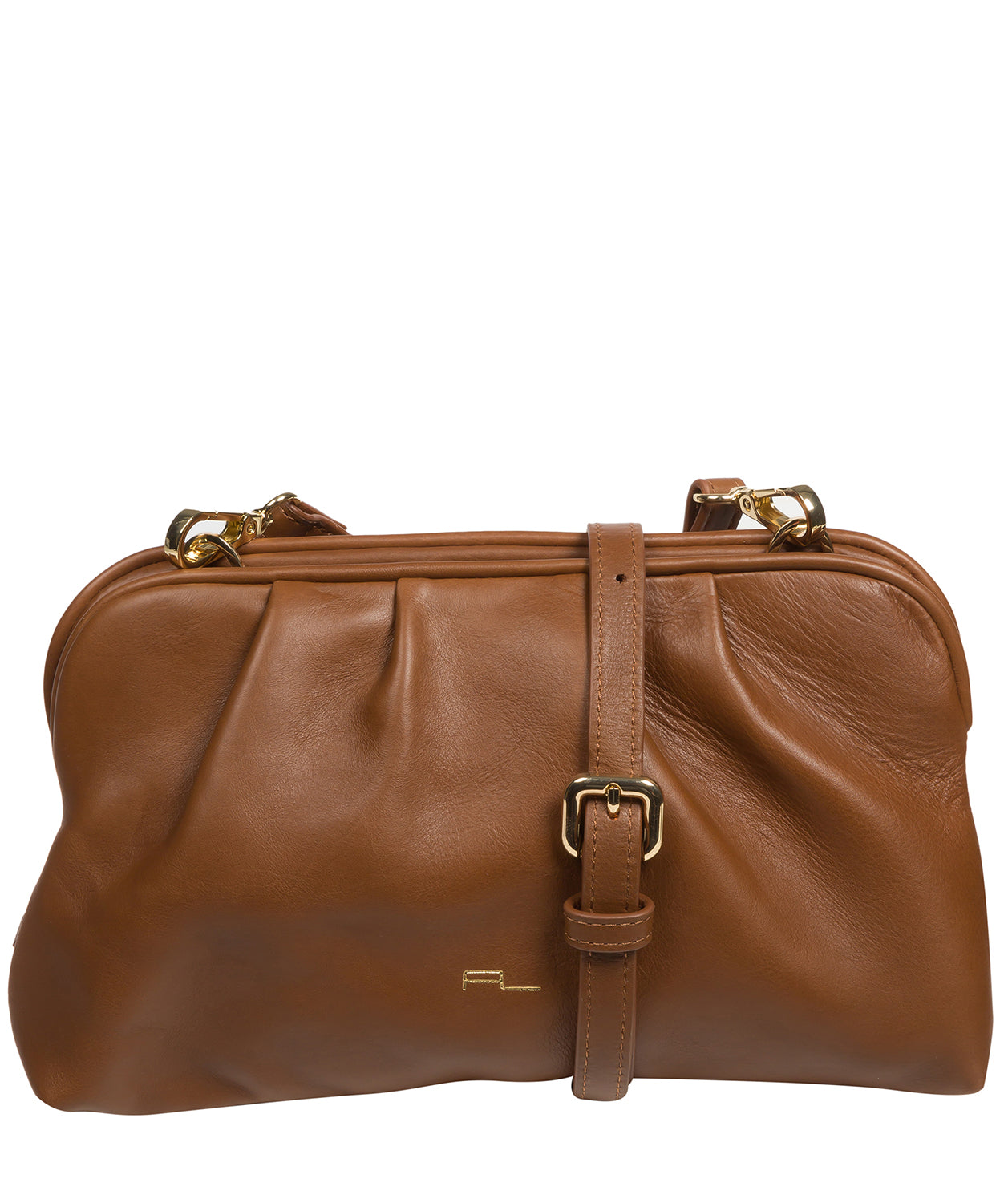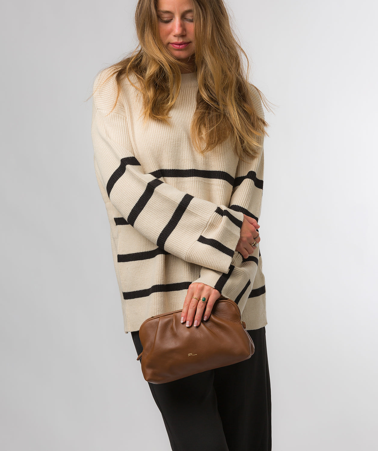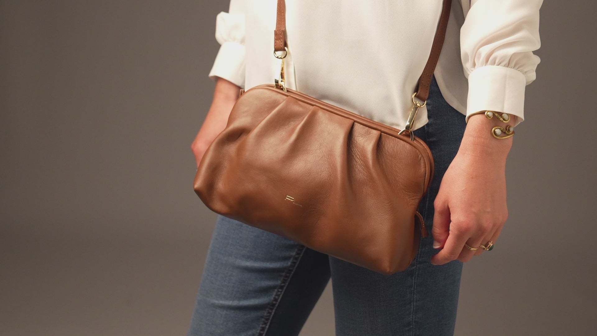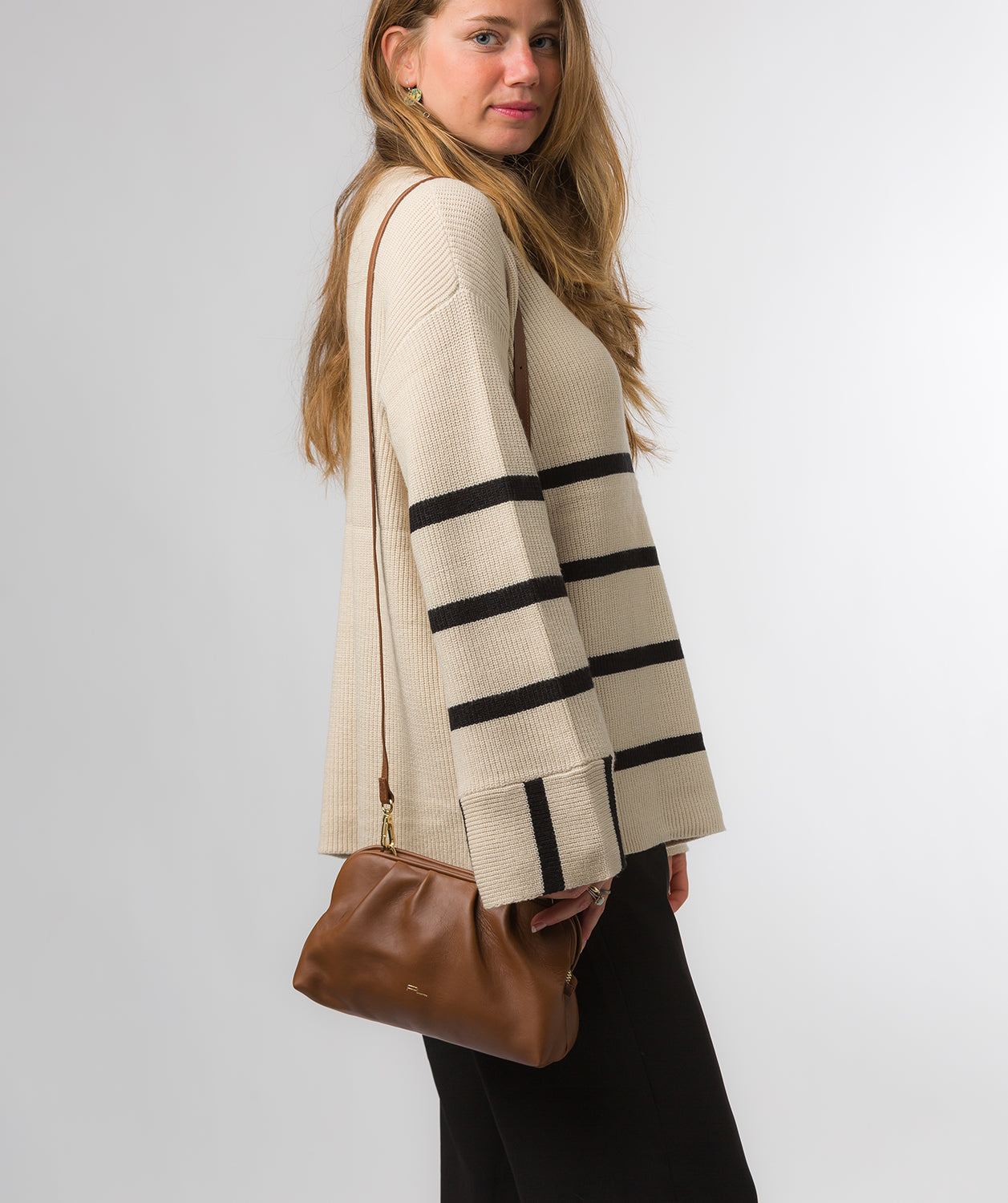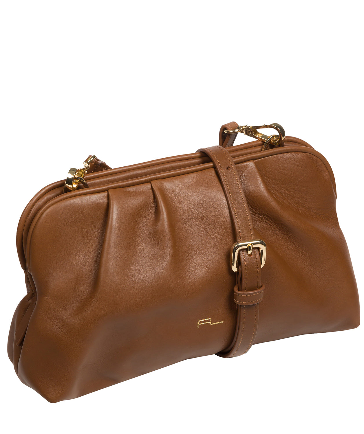 'Halsey' Chestnut Nappa Leather Cross Body Clutch Bag