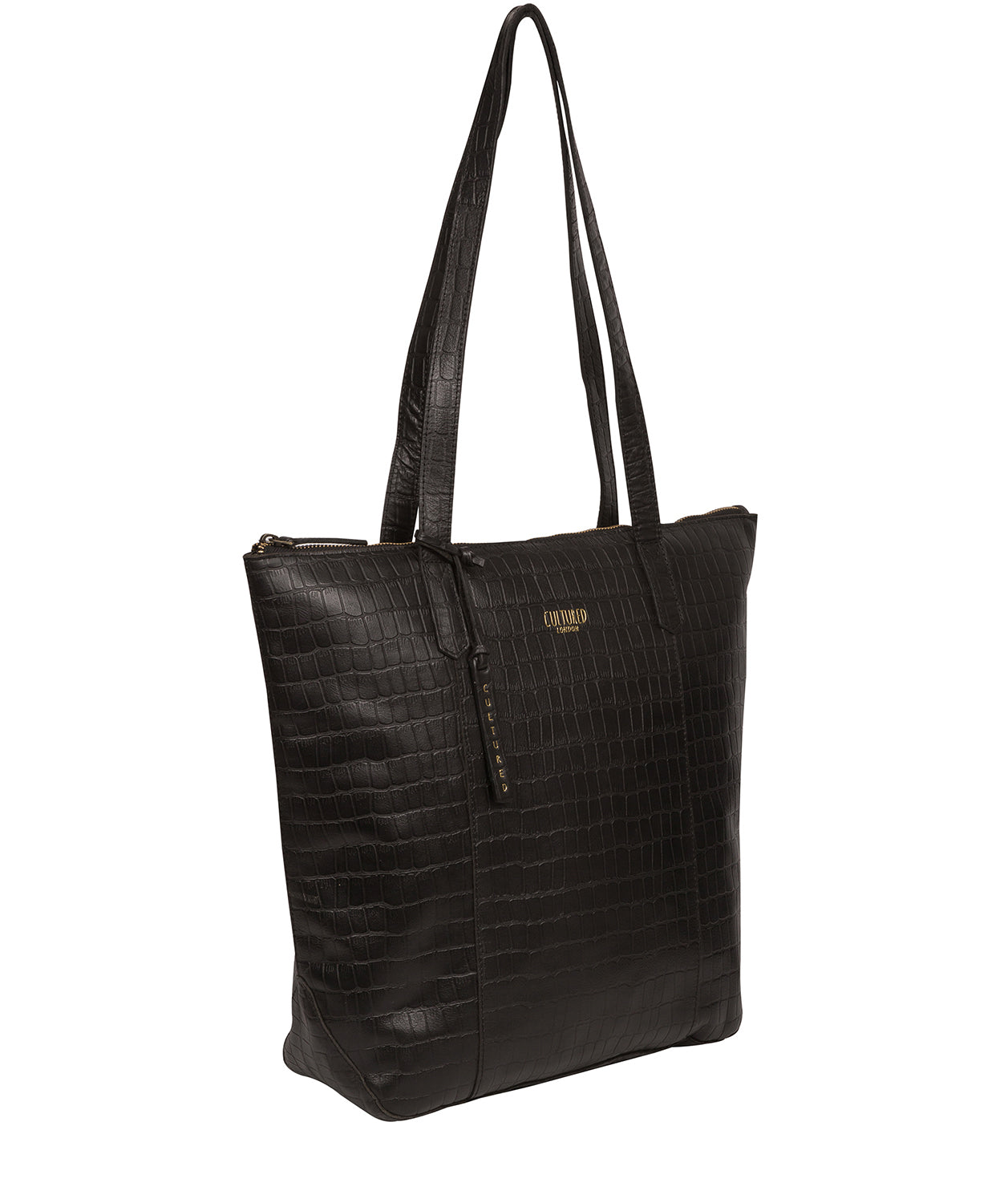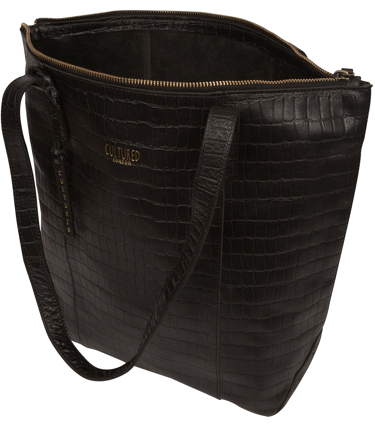 'Havering' Black Croc Leather Tote Bag