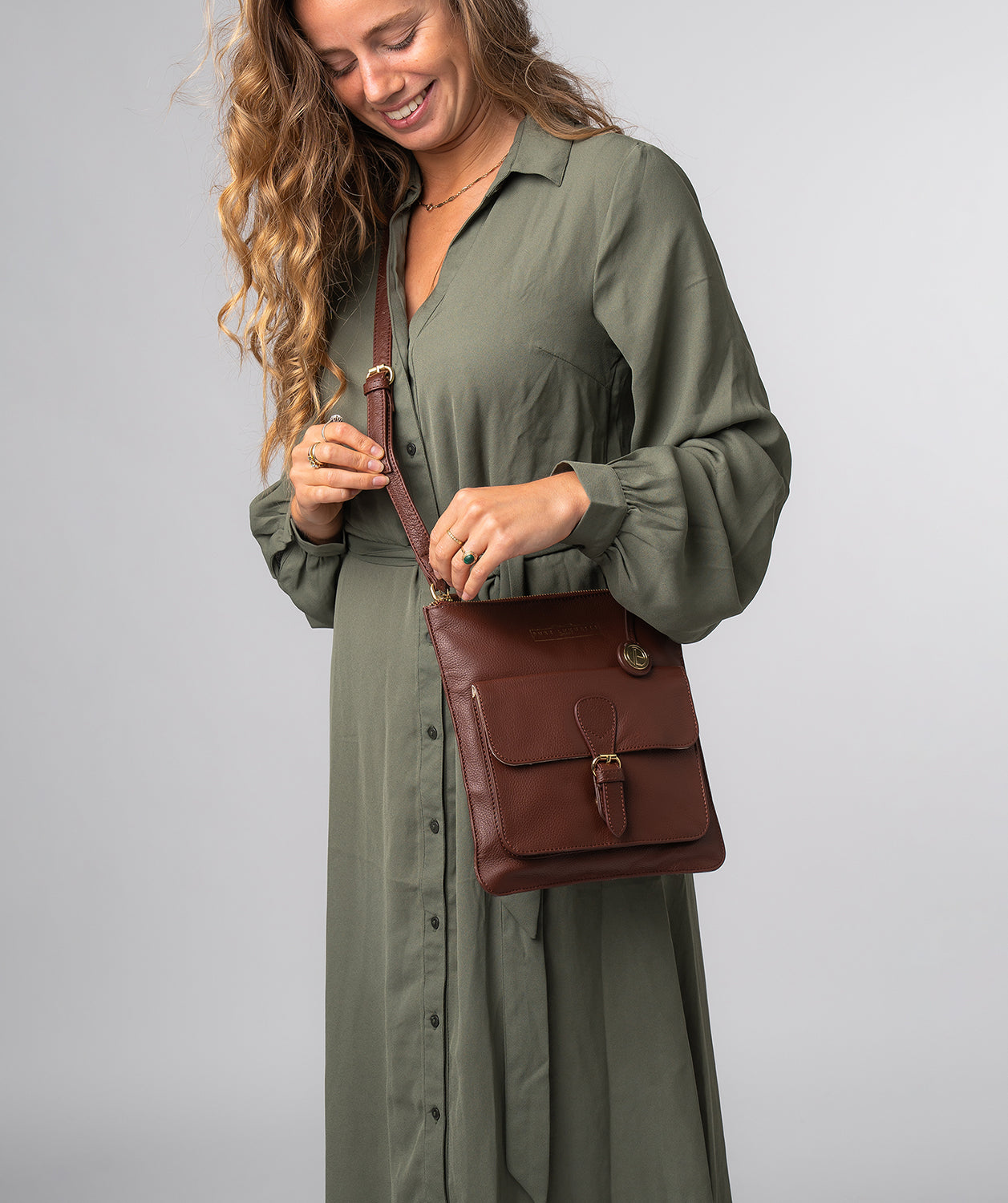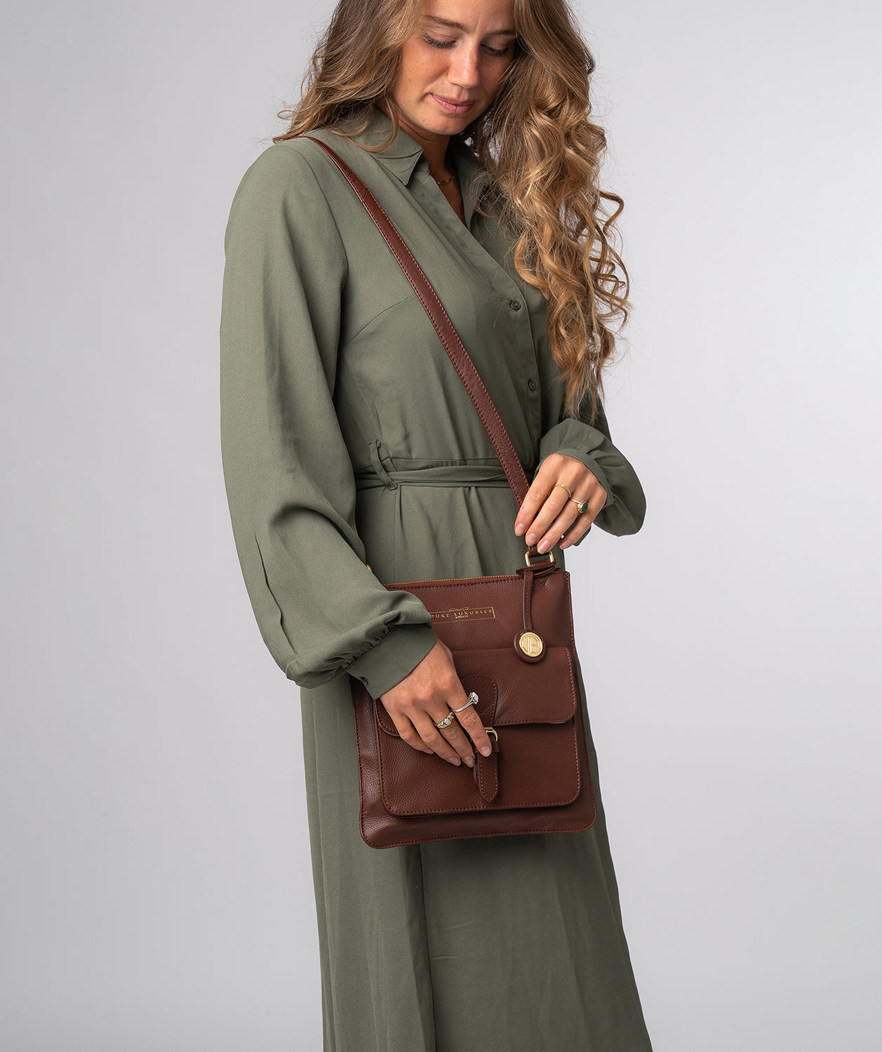 'Kenley' Chestnut Leather Cross Body Bag