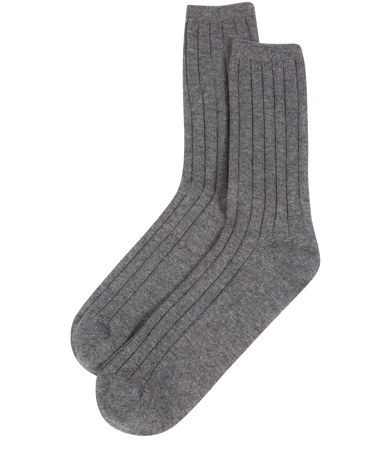 'Keswick' Grey Medium Cashmere and Merino Wool Ribbed Socks