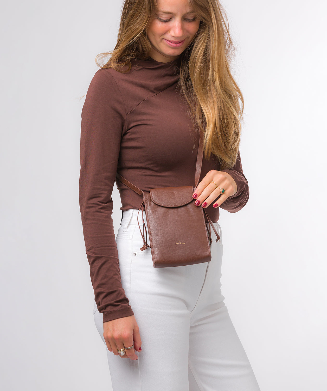 'Kiana' Dark Tan Nappa Leather Cross Body Phone Bag