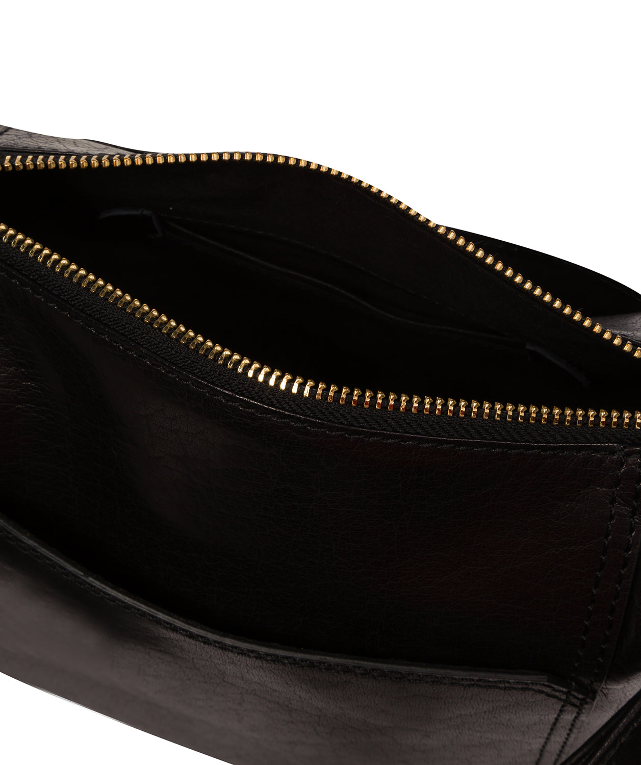 - Eye-catching gold metal fittings and zips adorn the bag alongside the adjustable slim leather strap with a drop length of 65cm