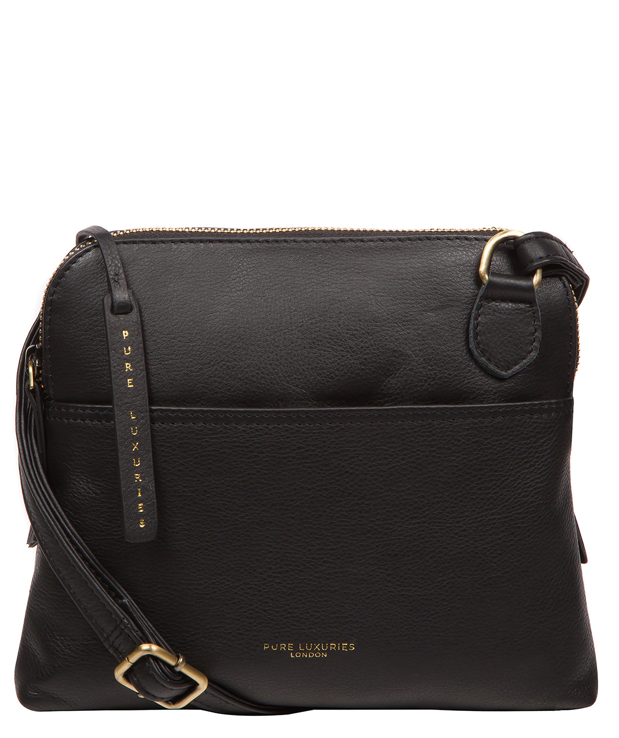 - The Pure Luxuries logo is embossed in gold foil on the front of the bag and the bag charm for a beautifully simple and sophisticated finishing touch