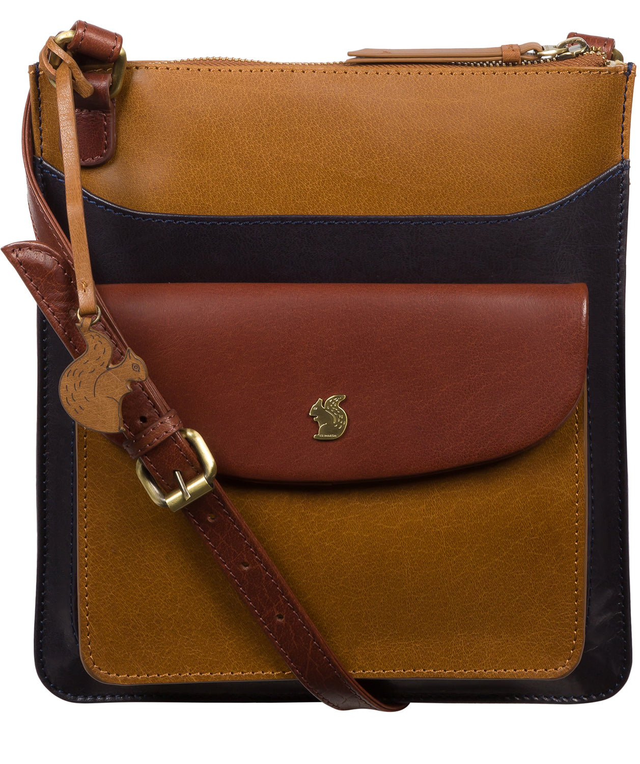 'Lauryn' Navy, Dark Tan & Conker Brown Leather Cross Body Bag