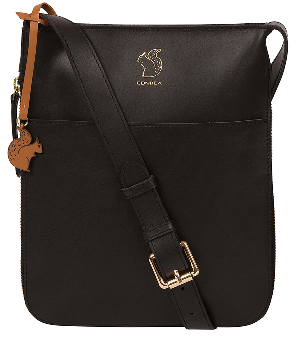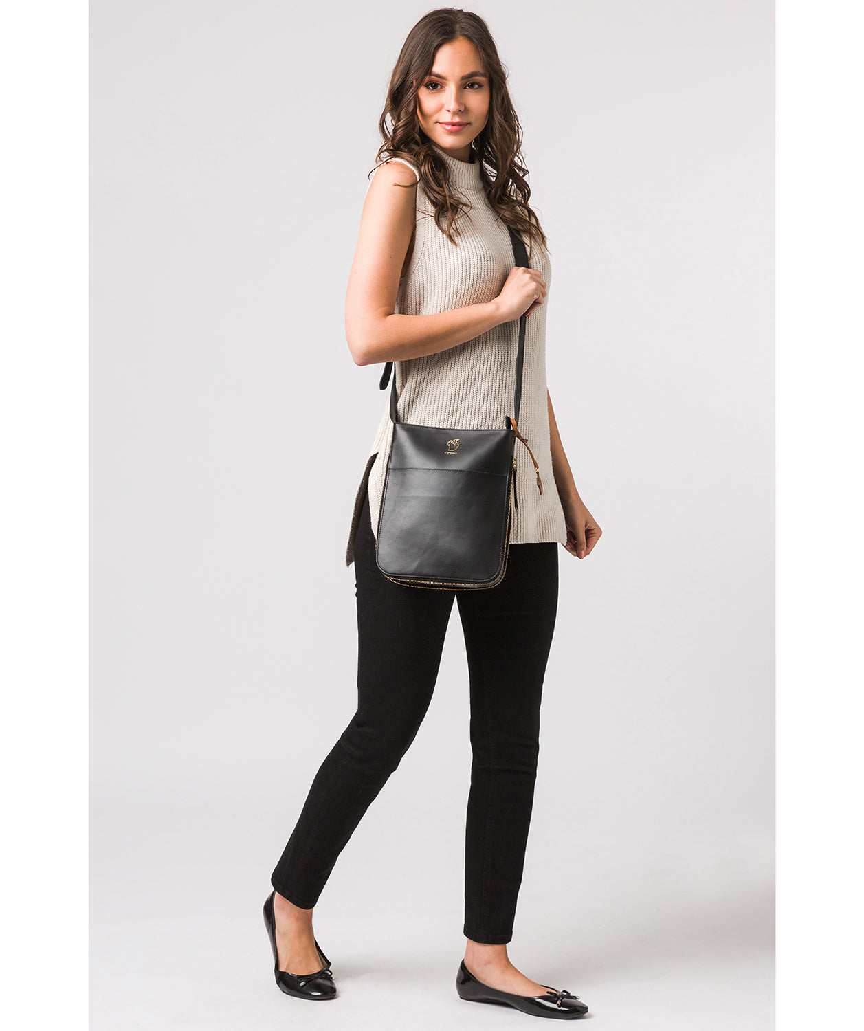'Lautner' Jet Black Vegetable-Tanned Leather Cross Body Bag