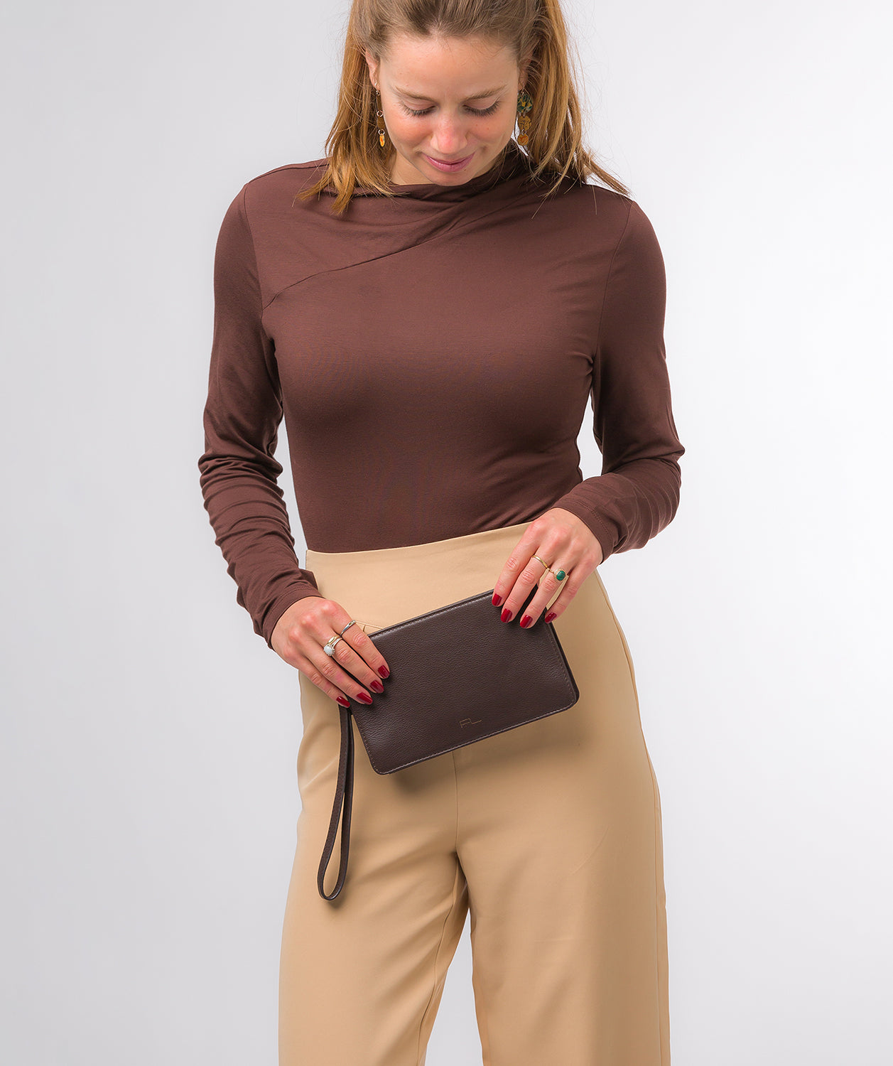 'Layla' Hot Fudge Nappa Leather Grab Clutch Phone Bag