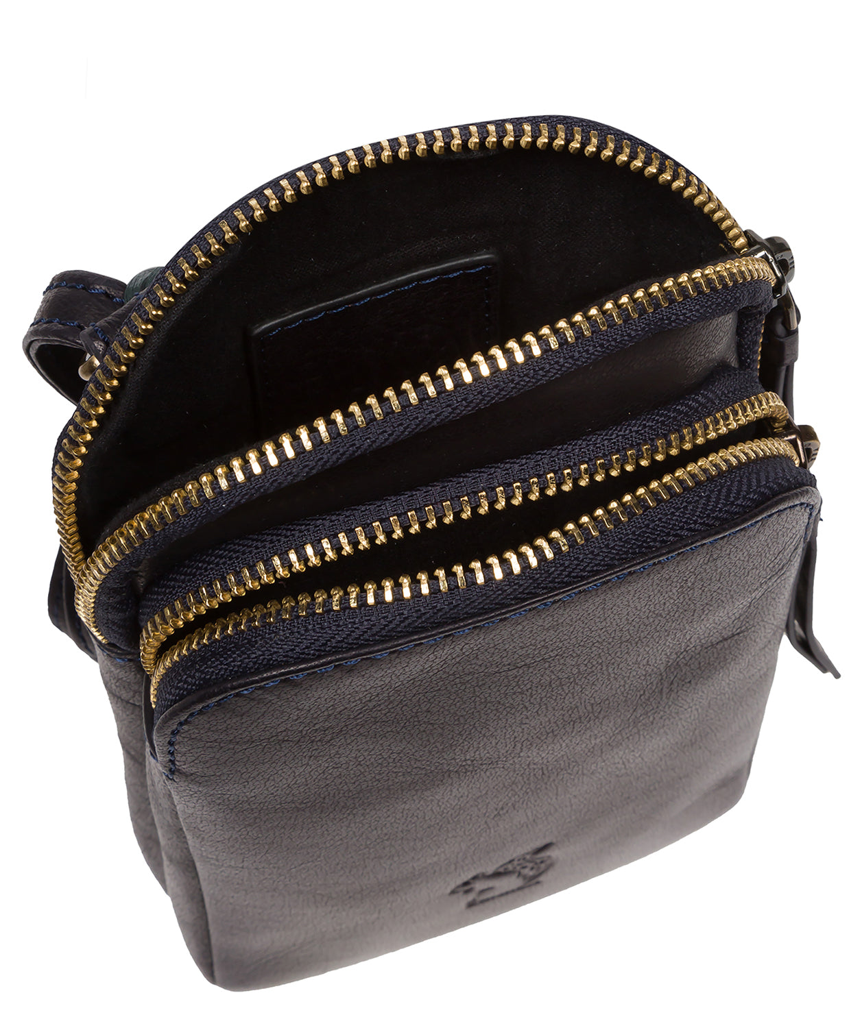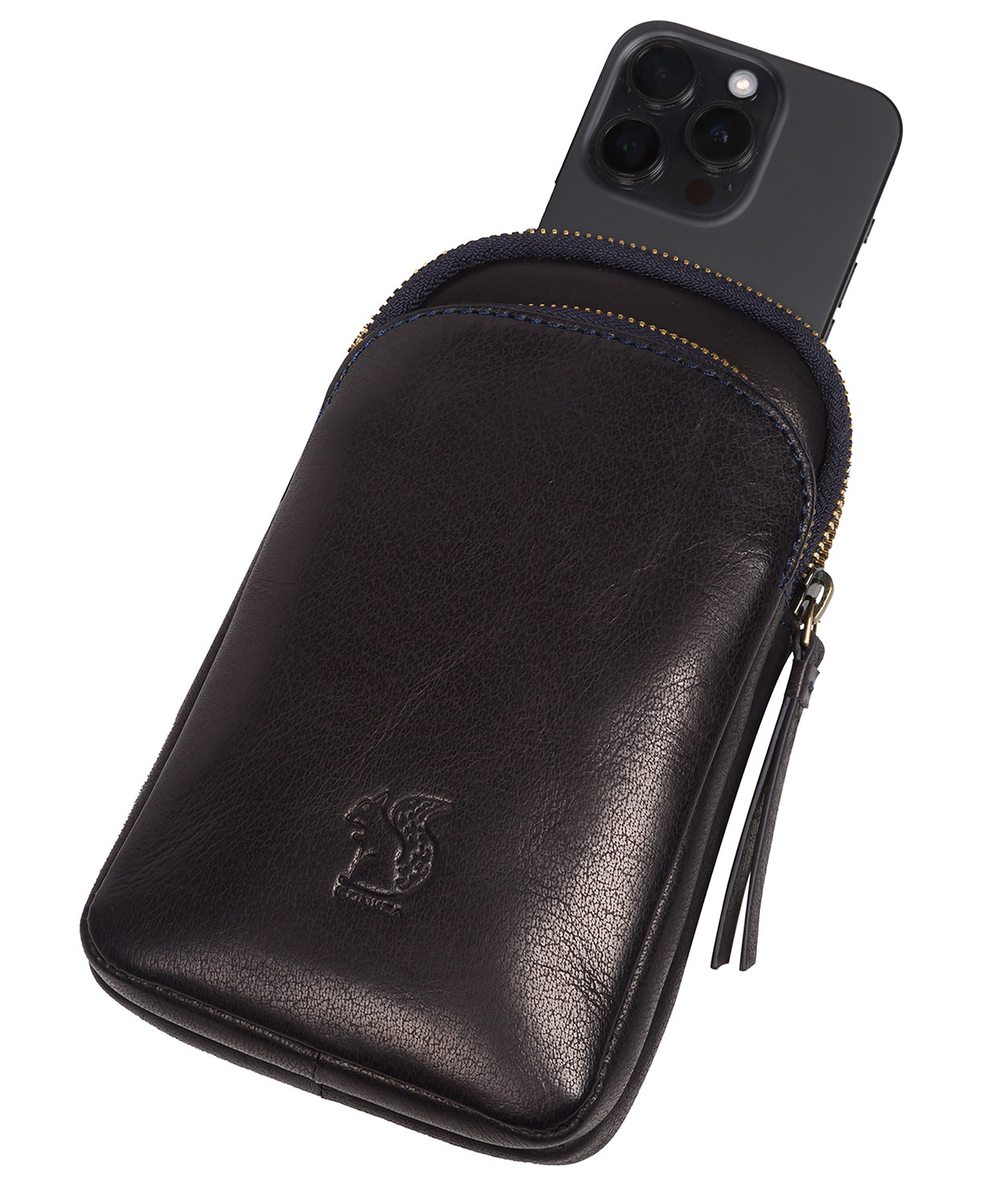 - A brass zip secures the main compartment which is lined with 100% cotton