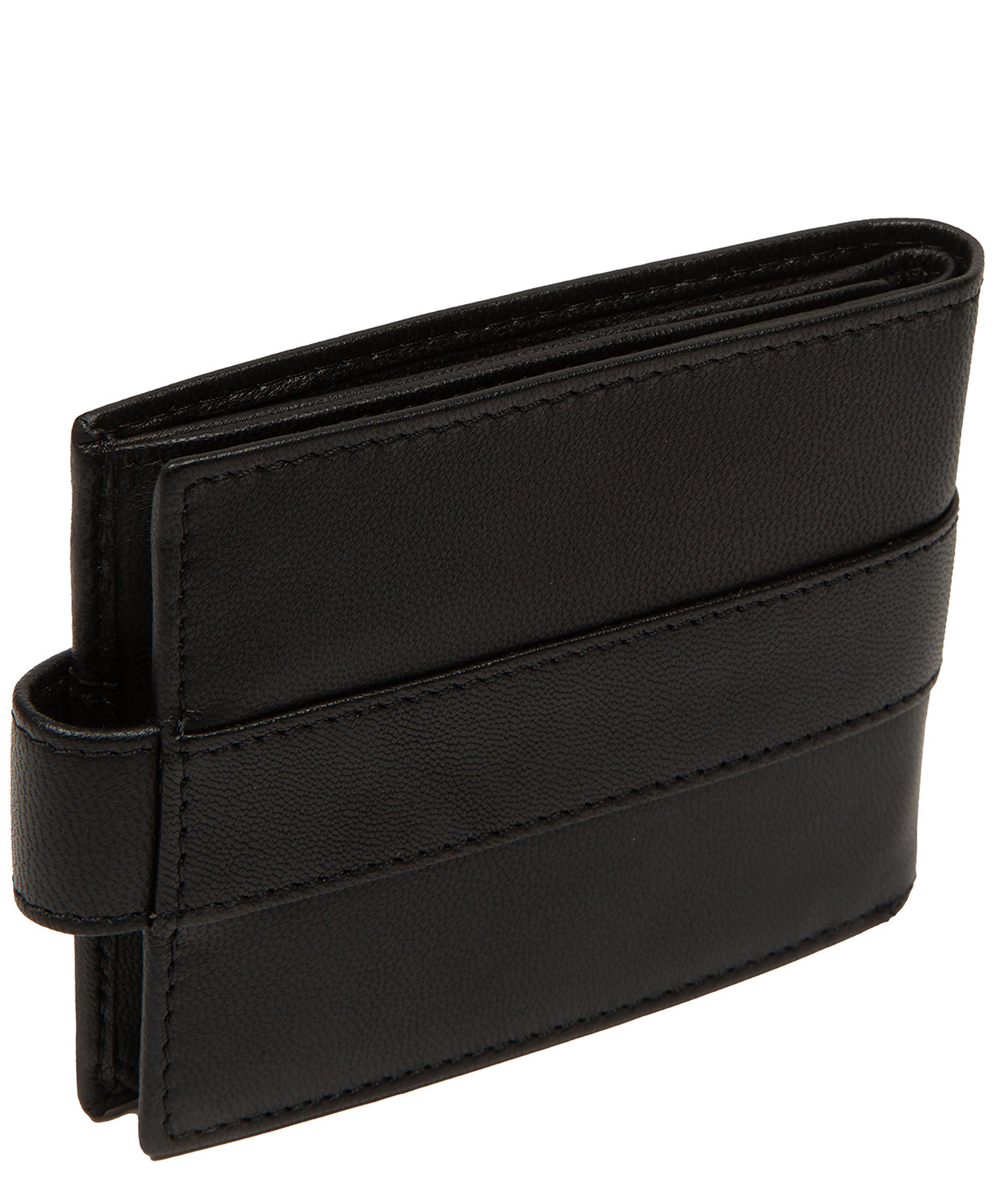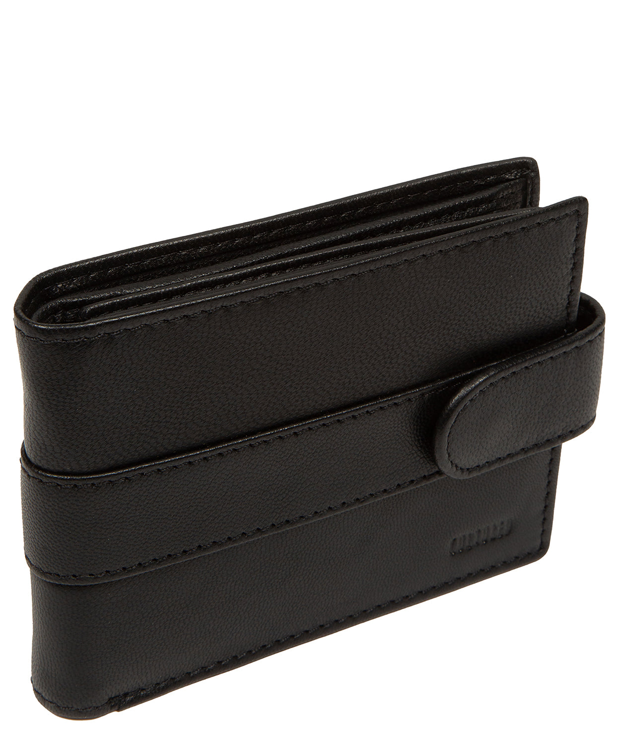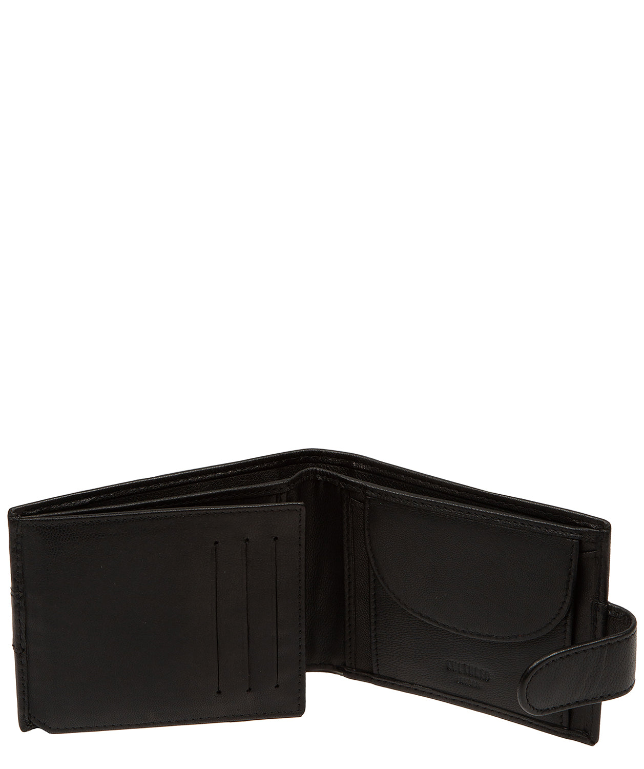 - A press stud fastener secures the tri-fold design and opens to reveal nine card slots