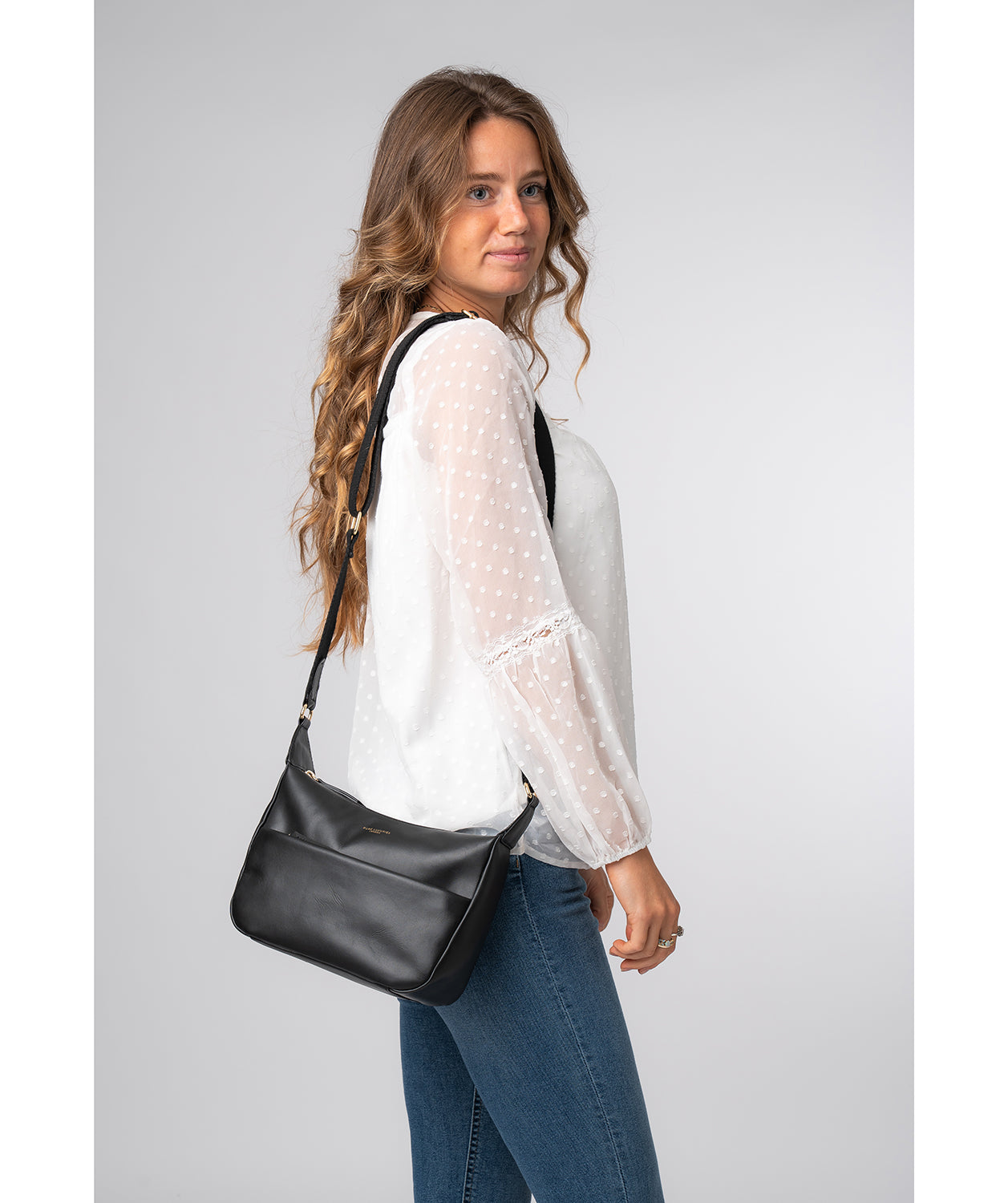 'Leonora' Black Leather Cross Body Bag