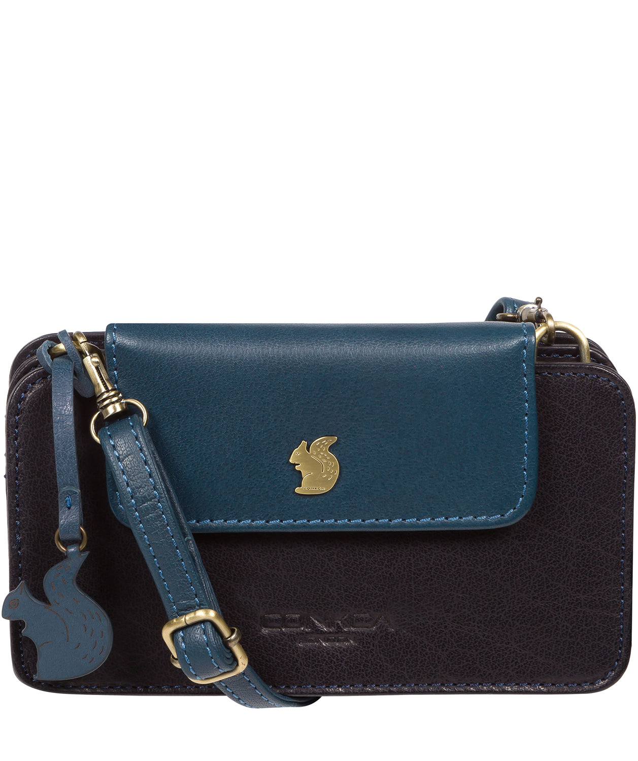 'Little Wonder' Navy & Snorkel Blue Leather Cross Body Clutch Bag