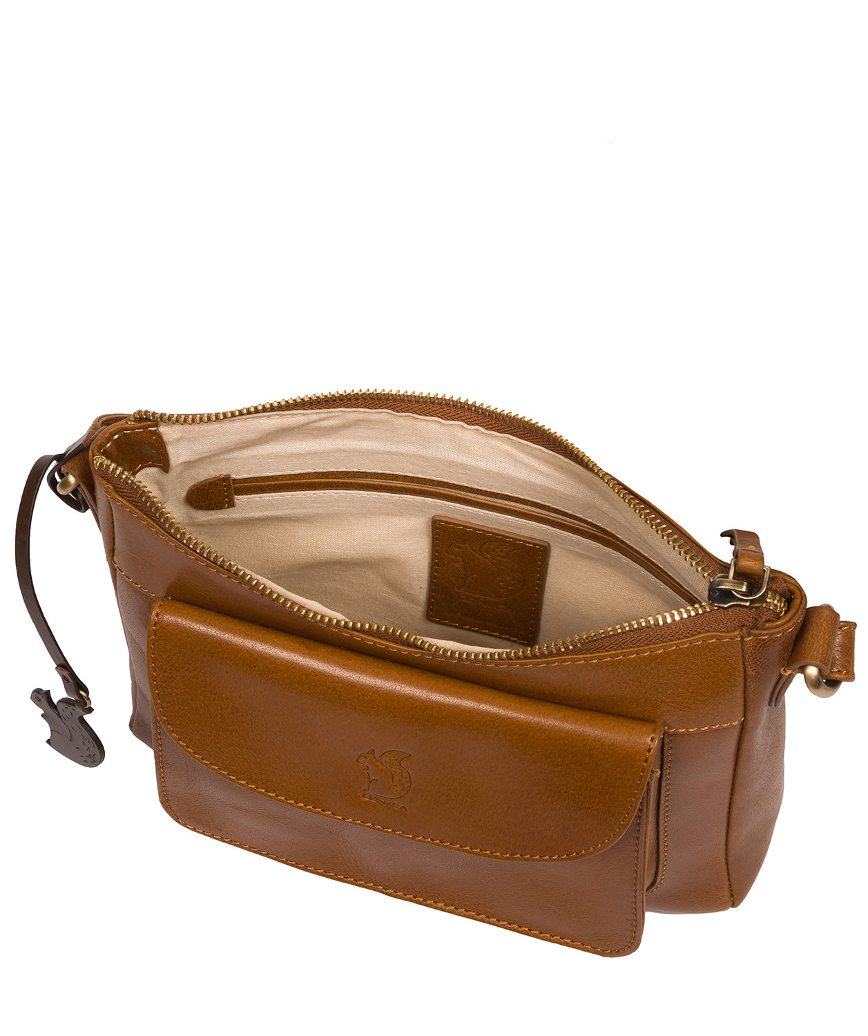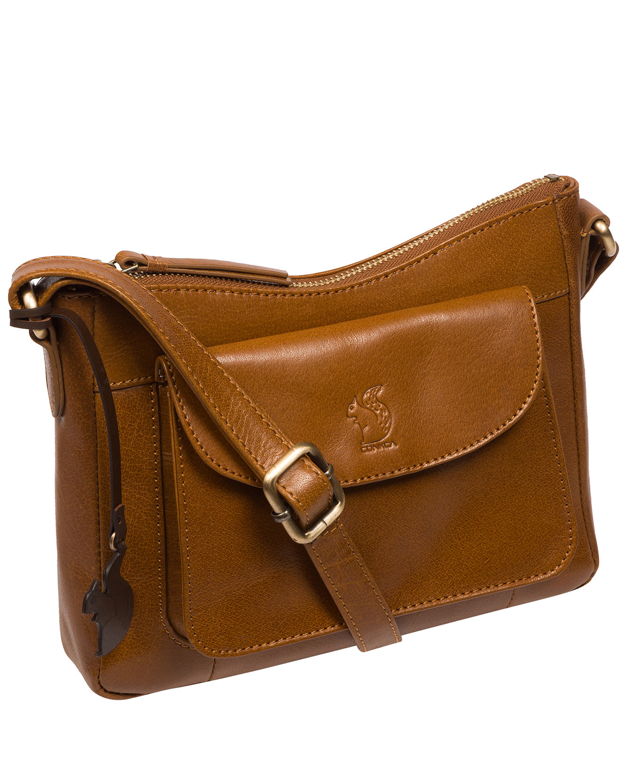 - Rustic brass metal zips and fittings adorn the adjustable slim leather strap which has a maximum drop length of 68cm