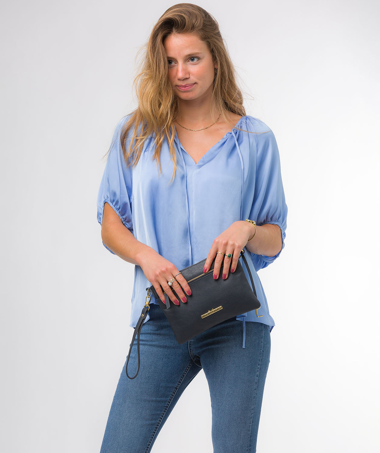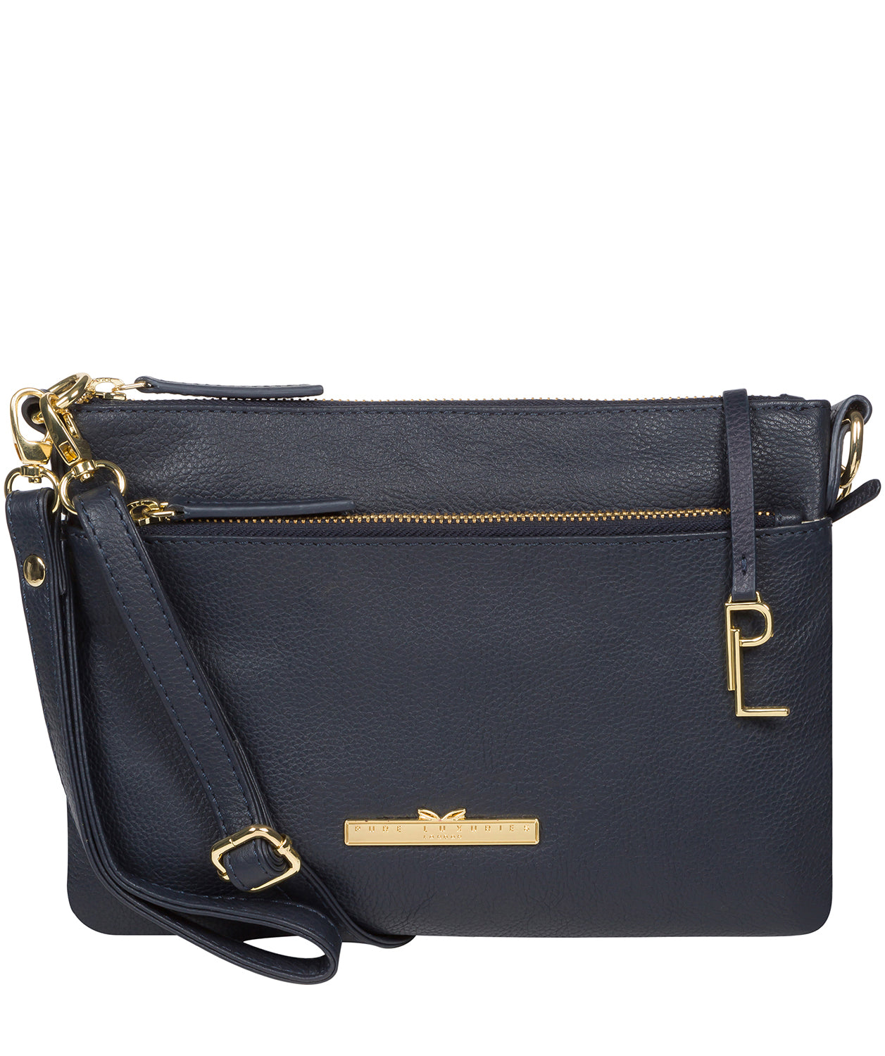 'Lytham' Navy Leather Cross Body Clutch Bag