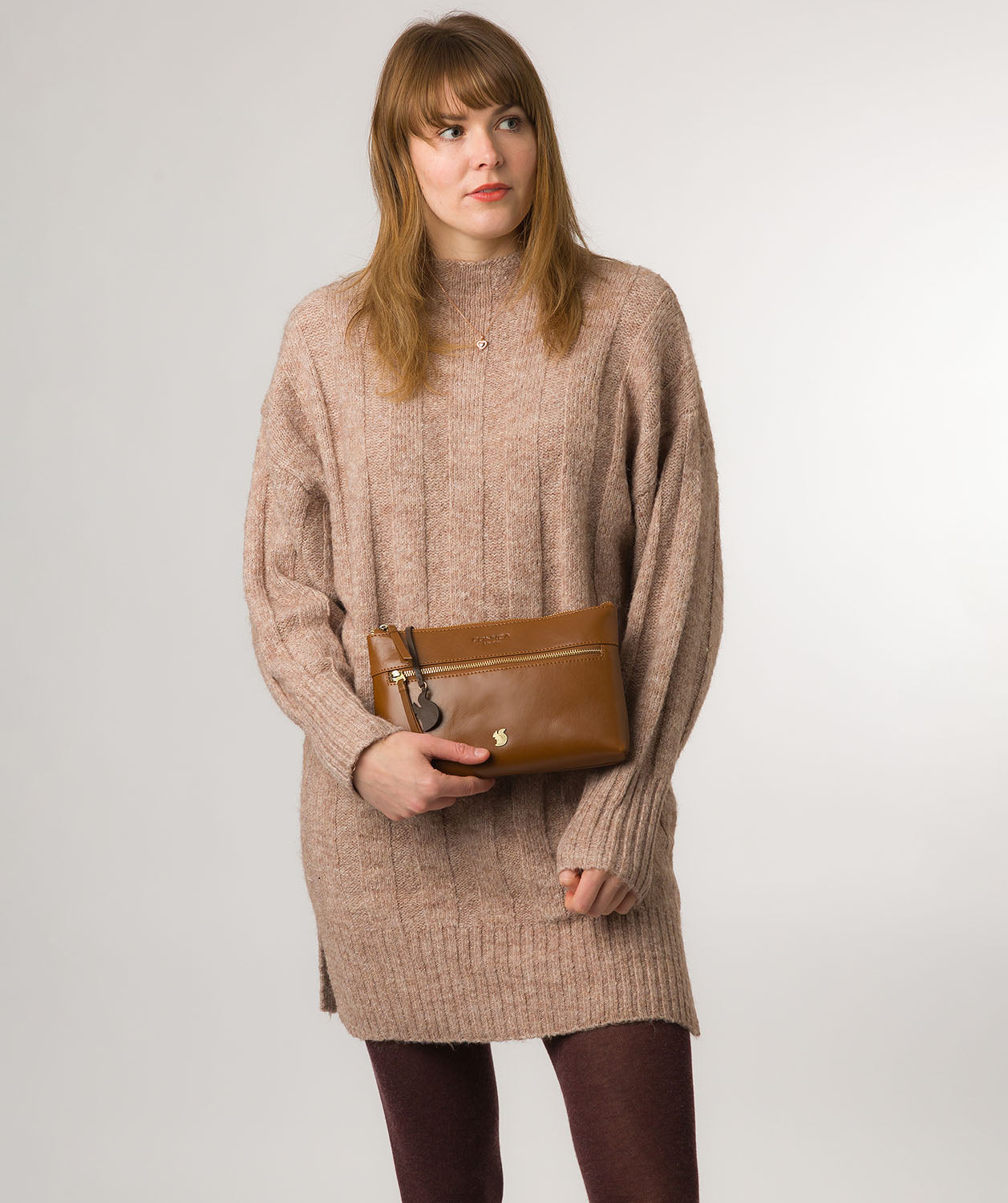 'Minnow' Dark Tan Leather Cross Body Clutch Bag