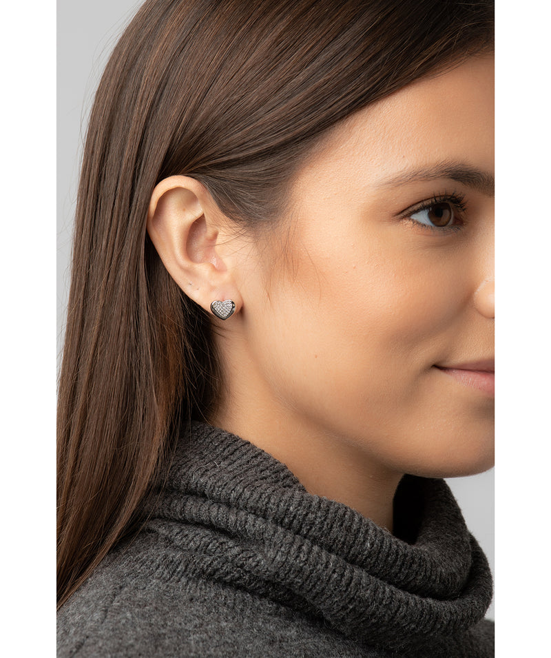 Gift Packaged 'Nadia' Rhodium Plated 925 Silver Heart Earrings
