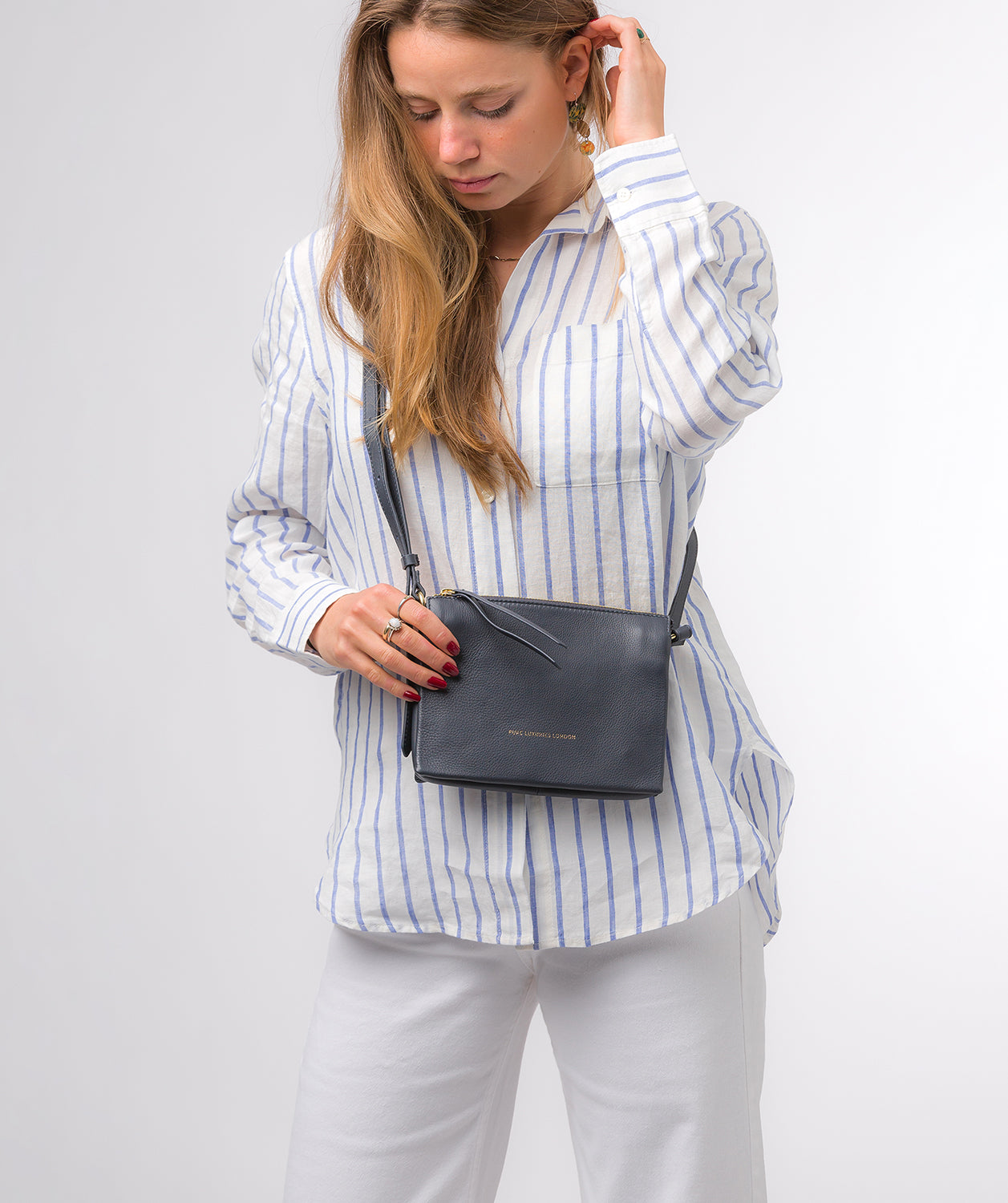 'Niki' Navy Nappa Leather Cross Body Bag