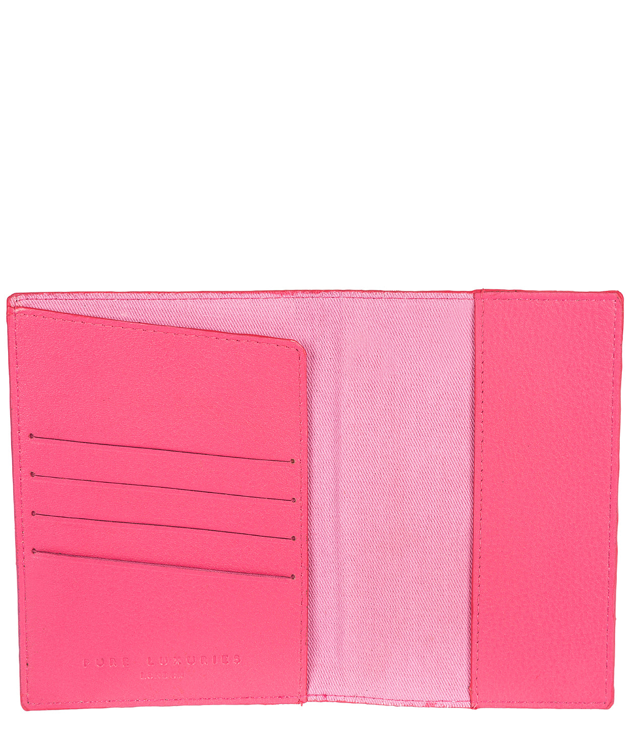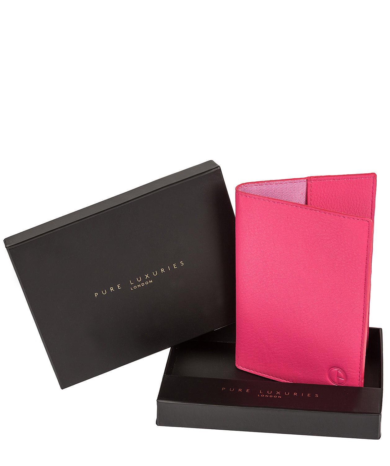 Add a splash of vibrant colour to your travel adventures with the stylish pink 'Pilot' passport wallet. Featuring four slots for credit cards or I.D. cards, the wallet provides an ideal space for passports with its cotton backed open compartment. The flexible card storage section allows for quick access to your passport when rushing to a departure gate! An RFID blocking lining also helps to prevent your personal details from unwanted scanning. Comes presented in a Pure Accessories gift box. Made from finest natural leather 4 card slots Passport compartment RFID lining designed to help shield your personal data from unwanted scanning Comes with a Pure Luxuries gift box