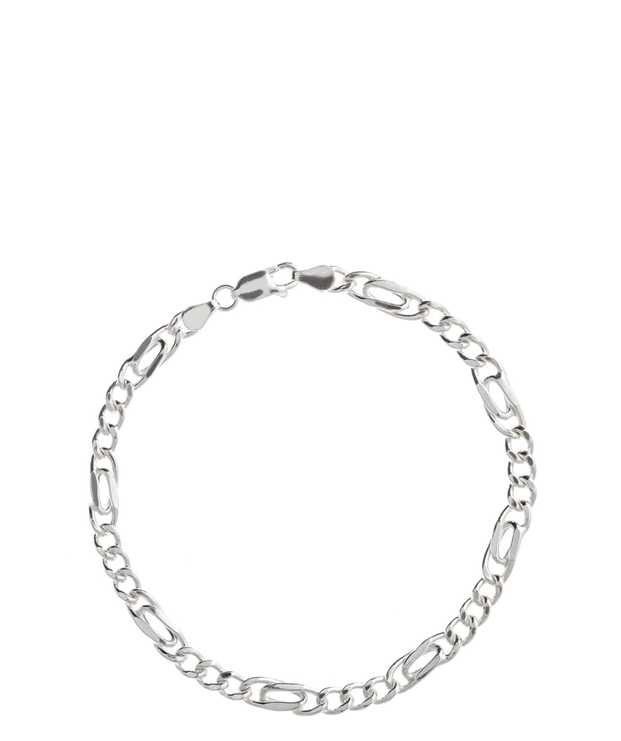 A beautifully understated design, this elegant bracelet is made from sterling silver in a Figaro chain design. Finished with a lobster claw clasp fastening, the bracelet comes presented in bespoke Pure Luxuries gift packaging. Figaro chain made from sterling silver 20cm length Lobster claw clasp fastening Presented in bespoke Pure Luxuries packaging