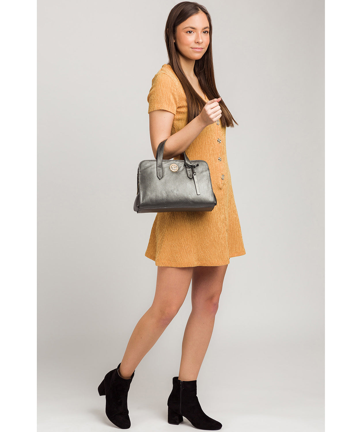 'Amelie' Metallic Dark Silver Leather Handbag