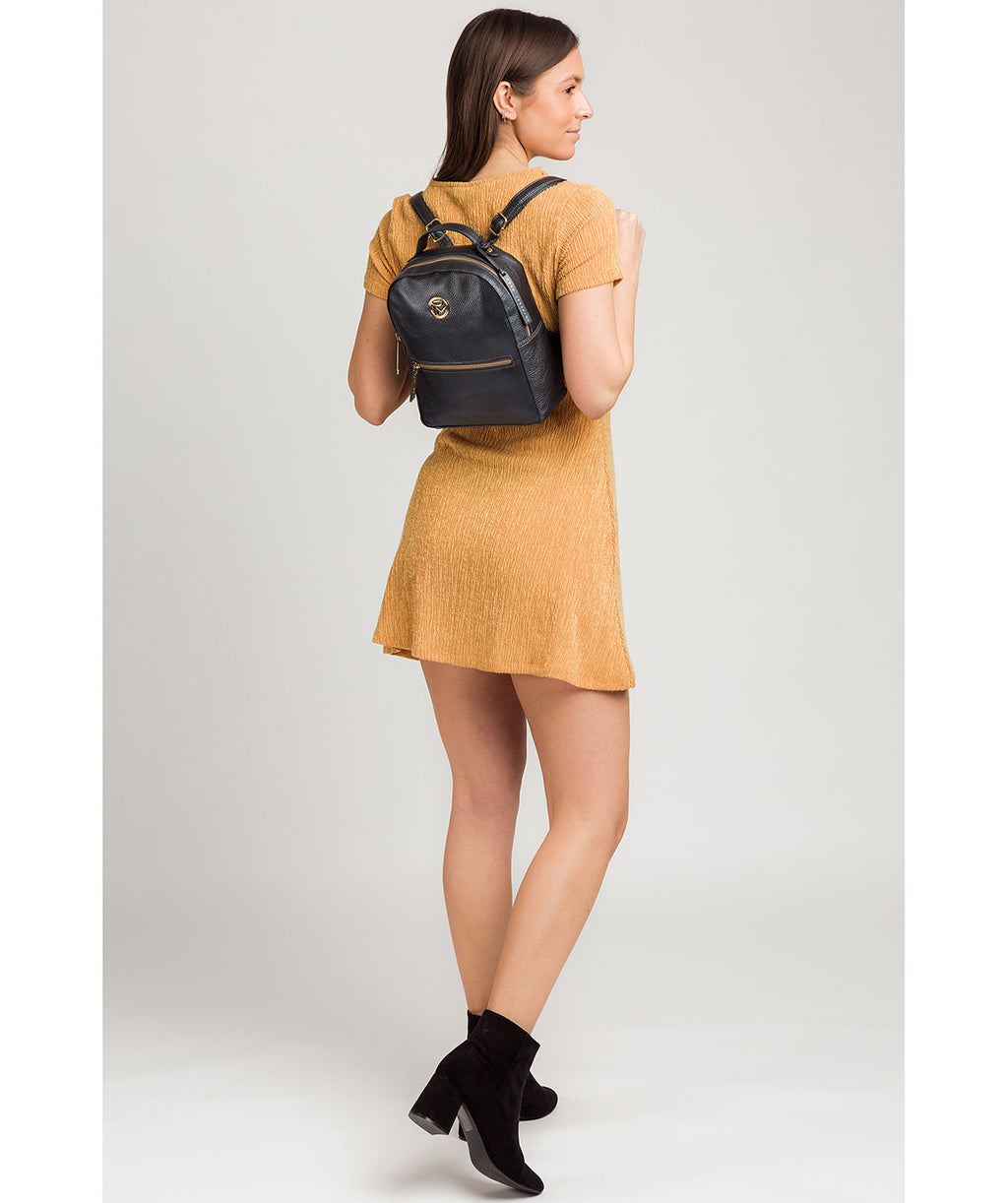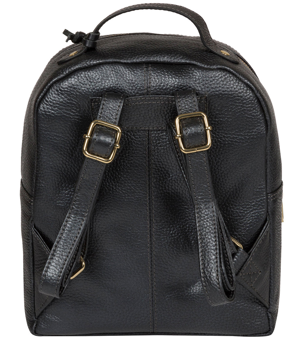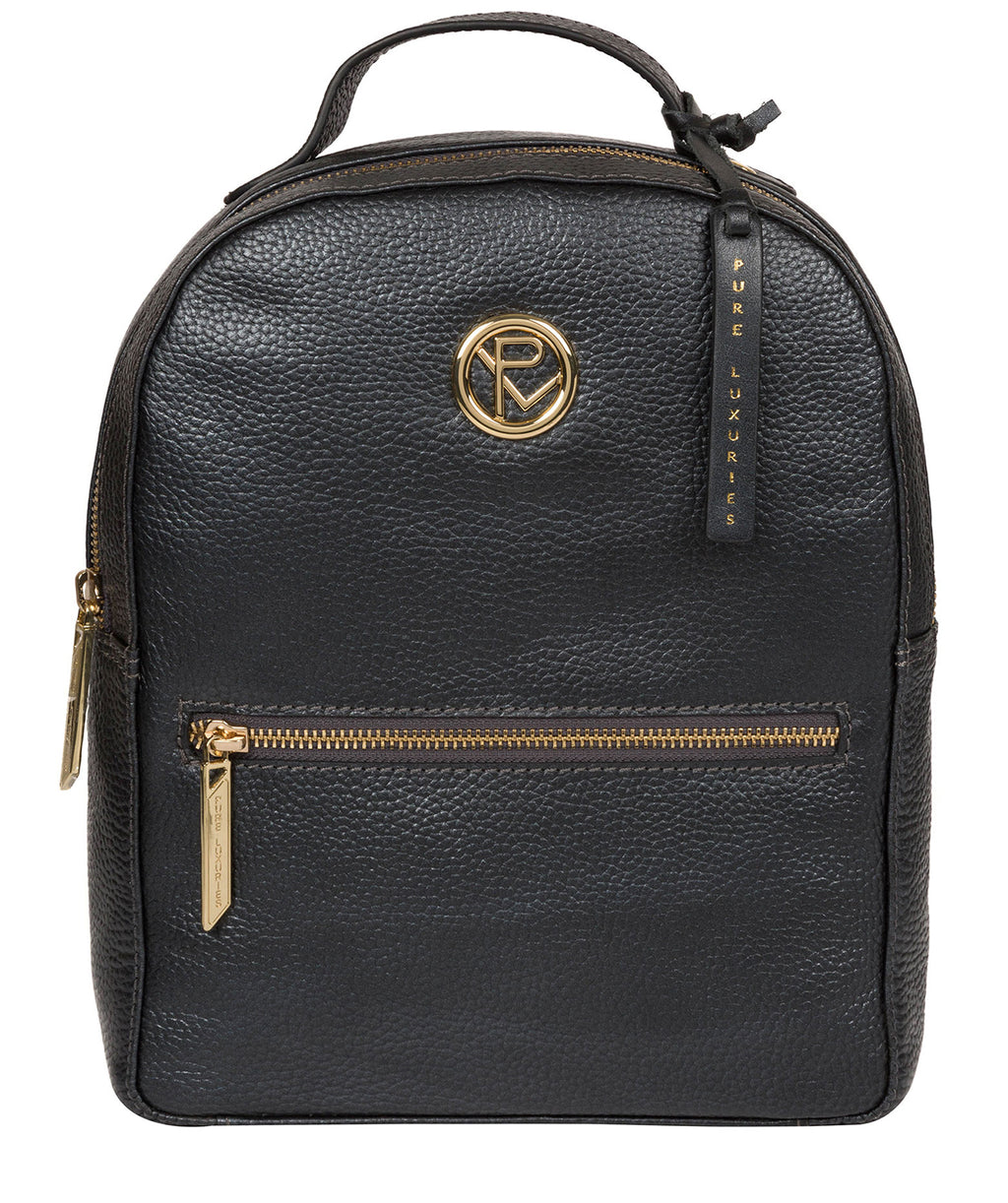 'Zuria' Metallic Blue Steel Leather Backpack