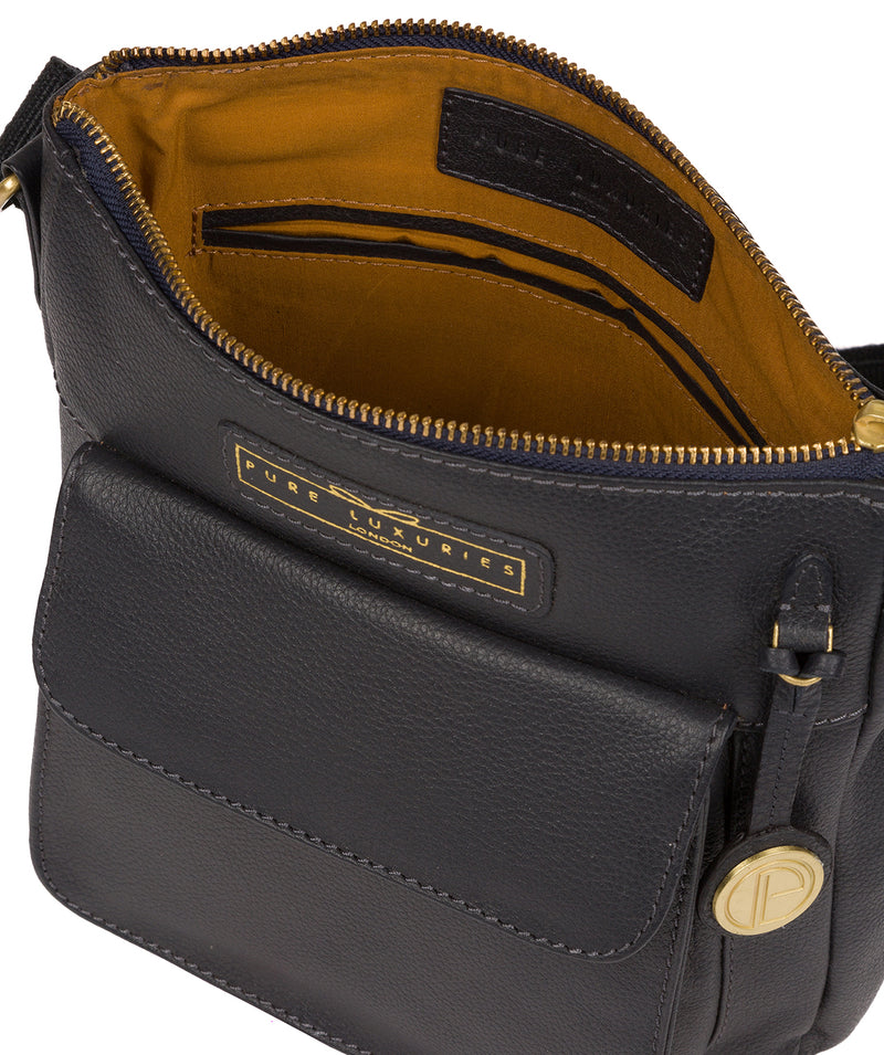- A zipped top secure the central compartment which features a beautiful tan interior