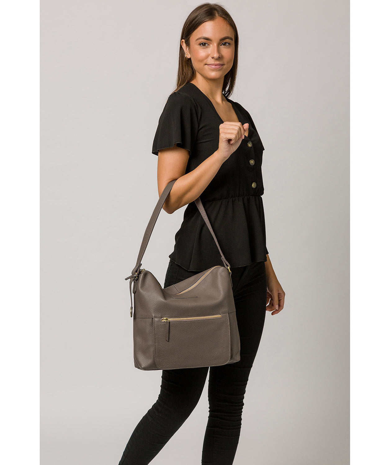 - An interior slip pouch and a zipped pocket which both provide the perfect home for a smart phone or keys