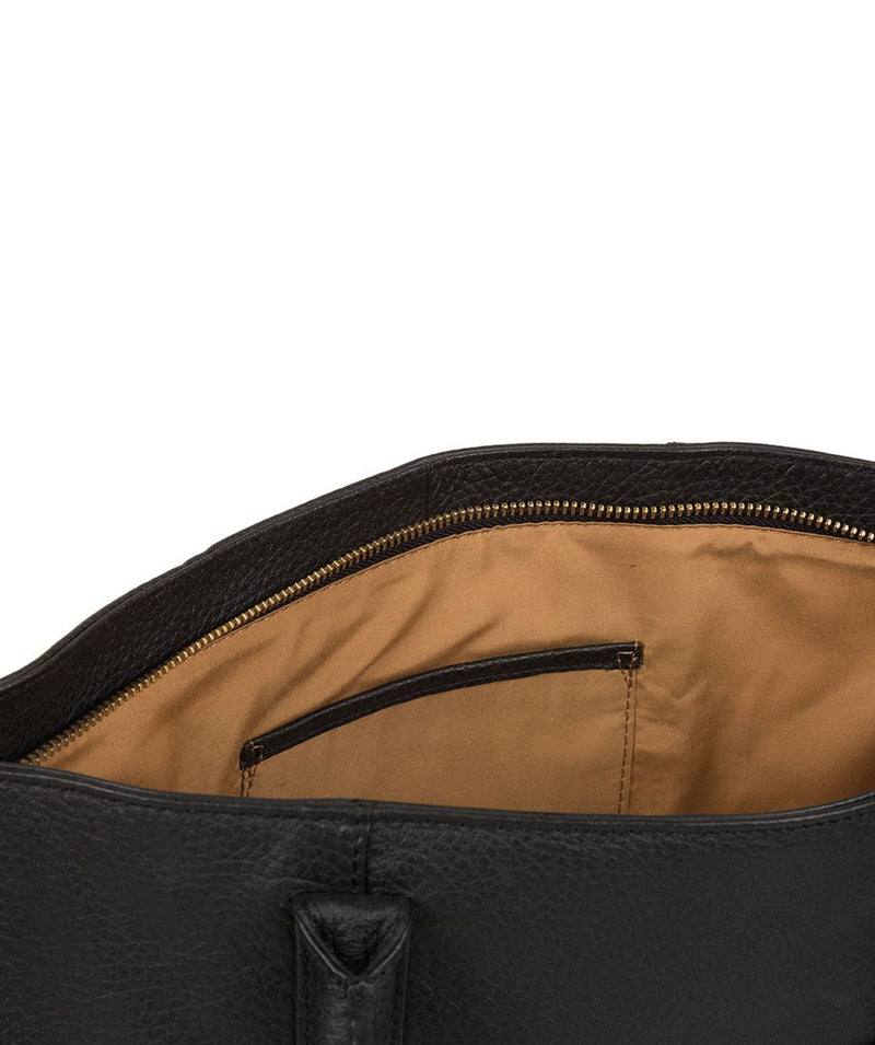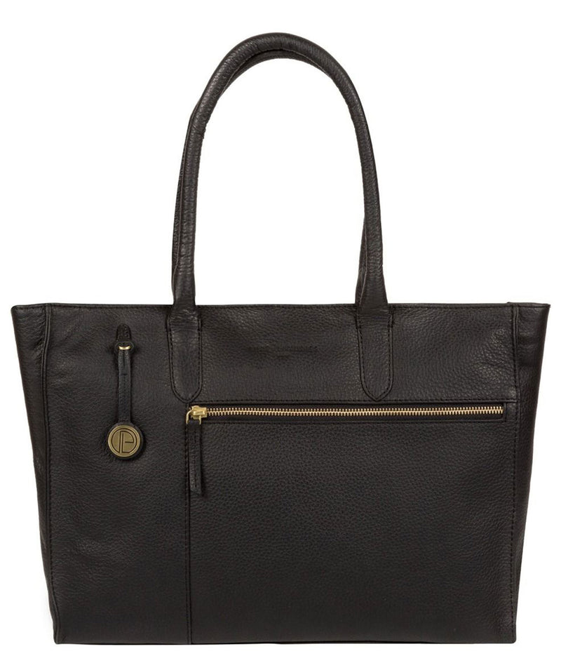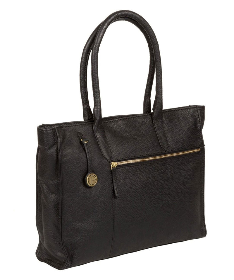 A spacious accessory that's perfect to carry everything you need, the 'Bexley' handbag is made from fine cowhide leather chosen for its natural pebbled hide markings and soft-to-the-touch feel. The bag zips open to an interior that's ideal for A4 documents and magazines, fully lined in contrast and including a slip pouch opposite a phone slot. Finished with additional pockets to the front and rear, the 'Bexley' comes with leather handles and a Pure Luxuries charm. Made from finest natural cowhide leather with a soft-to-the-touch feel and pebbled hide finish Fully lined in contrast 1 zipped pocket, 2 pouches, phone slot Gold-coloured metal fittings Matching black leather handles Comes with a Pure Luxuries charm