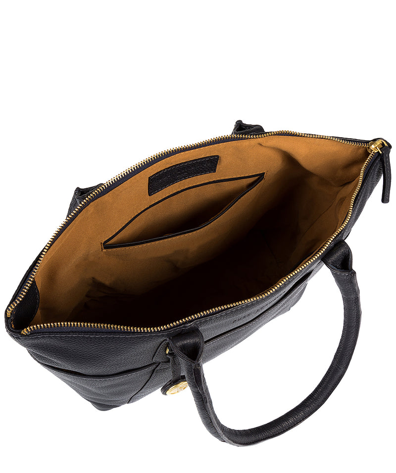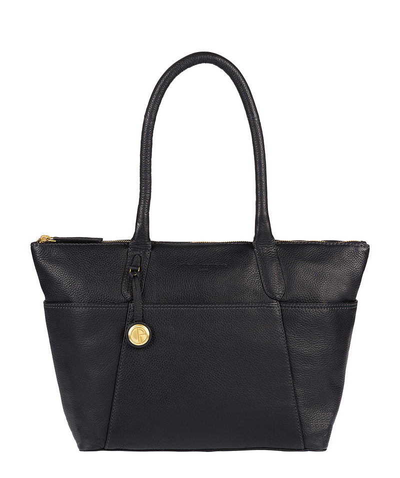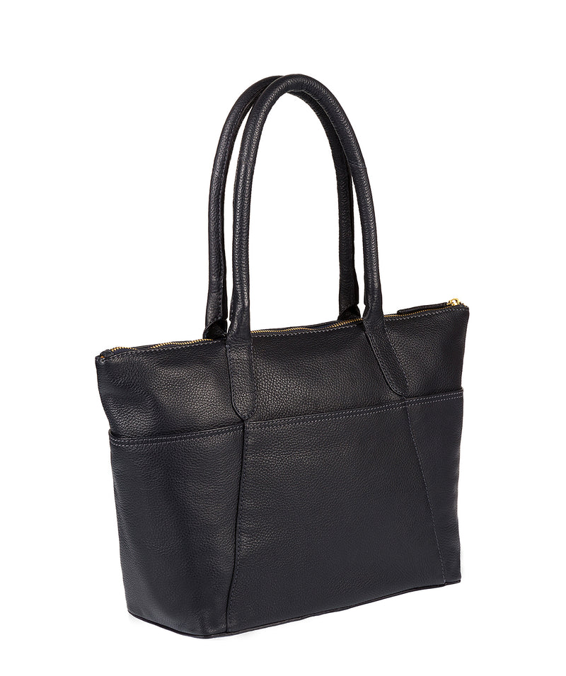 'Eton' Navy & Gold-Coloured Detail Leather Tote Bag