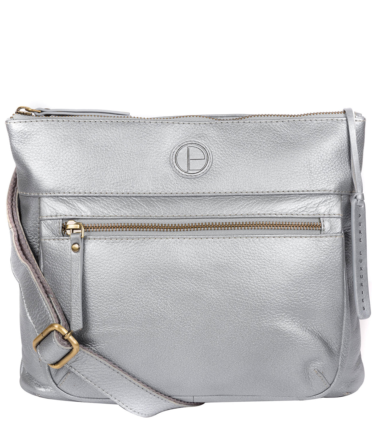 'Serenity' Metallic Silver Leather Cross Body Bag