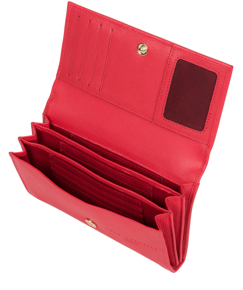 - Features a press stud which opens up to reveal the spacious central section of the purse which conceals three versatile pouches for all essential items