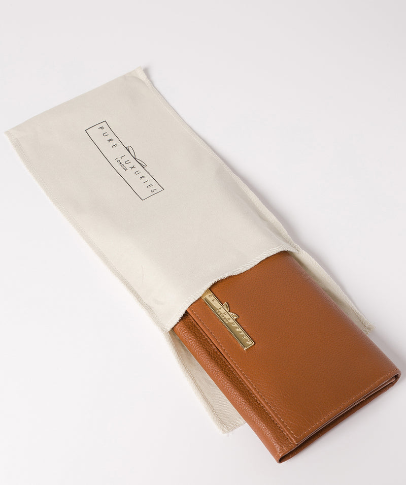 - Adorned with the signature Pure Luxuries logo on the exterior of the wallet