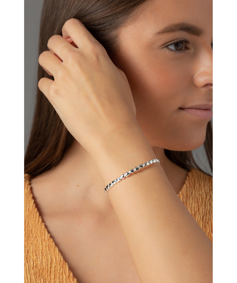 - Hearts adorn this beautiful classic bangle for a stylish and eye-catching accessory