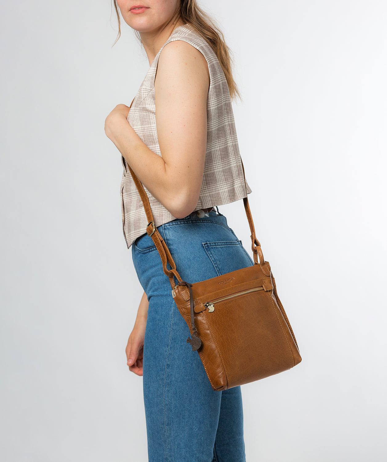 'Rego' Dark Tan Leather Cross Body Bag