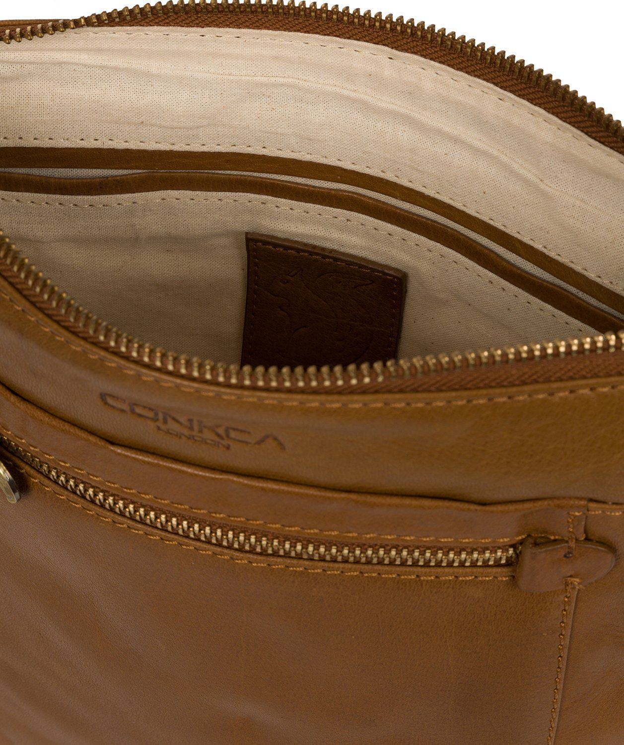 - A zip-over top secures the central compartment, concealing the natural and untreated 100% cotton lining