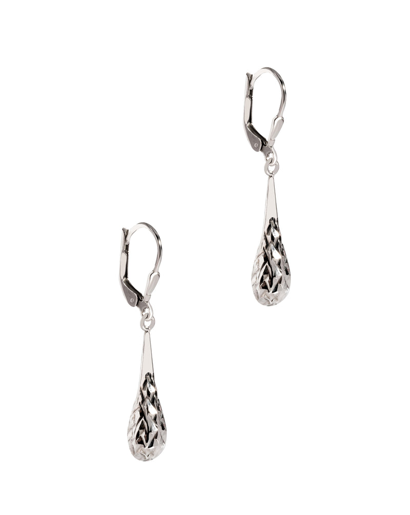 Gift Packaged 'Savannah' Sterling Silver Diamond Cut Teardrop Lever Back Drop Earrings