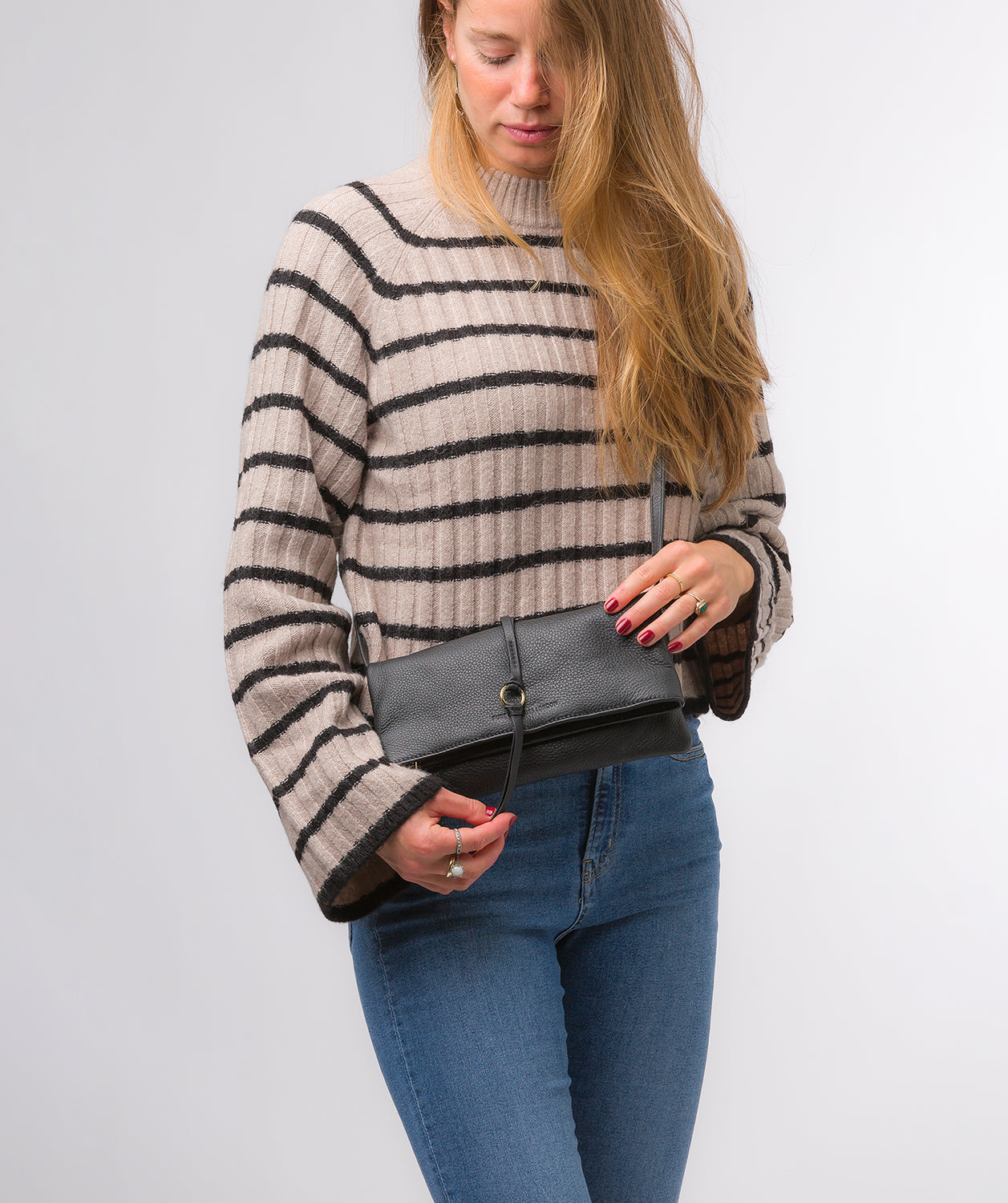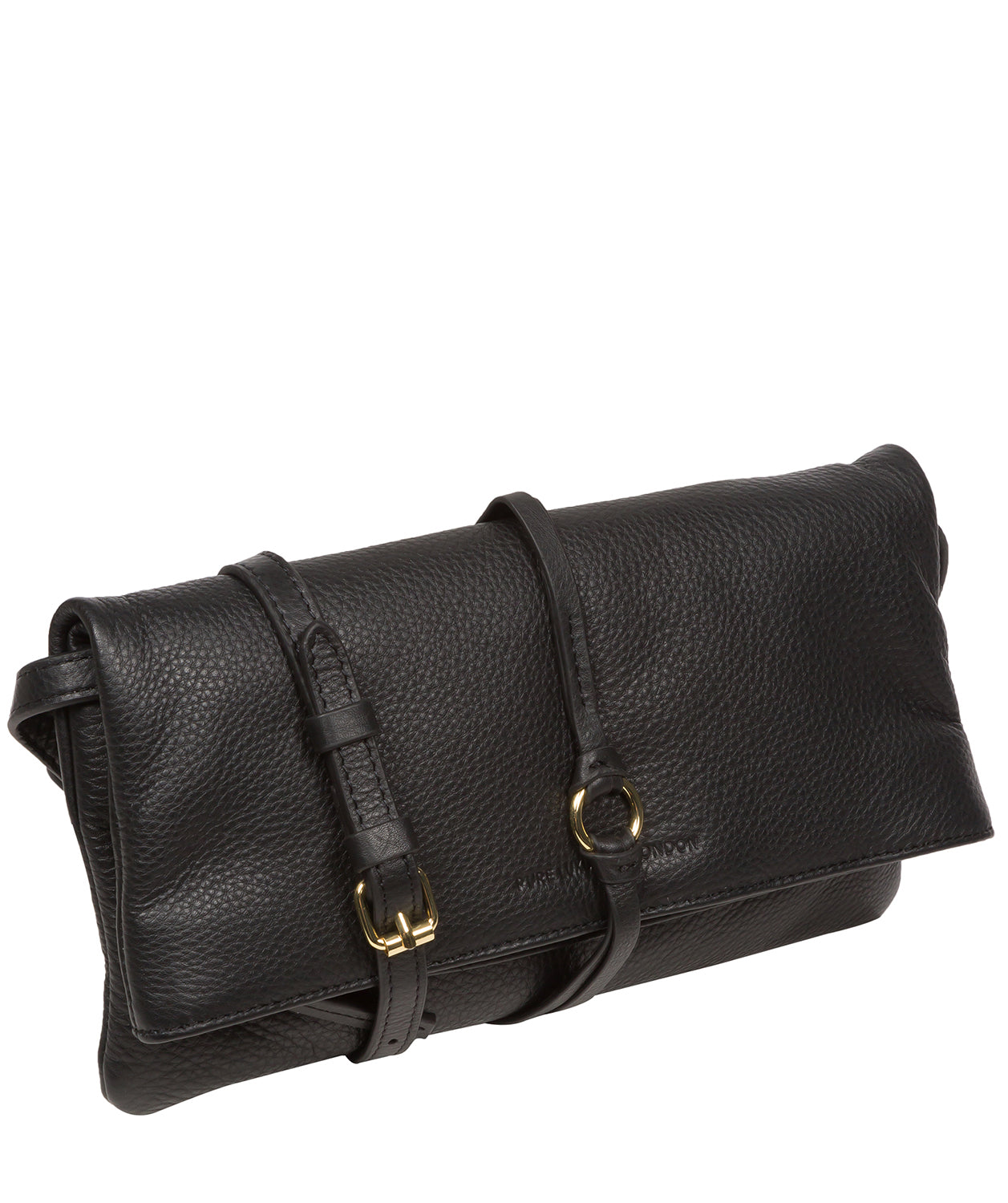'Selene' Black Nappa Leather Cross Body Clutch Bag