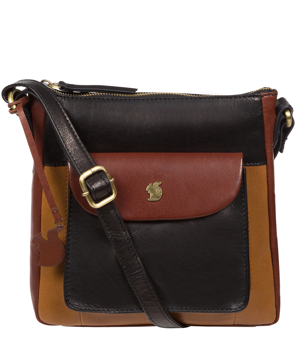 'Shona' Dark Tan, Black & Conker Brown Leather Cross Body Bag