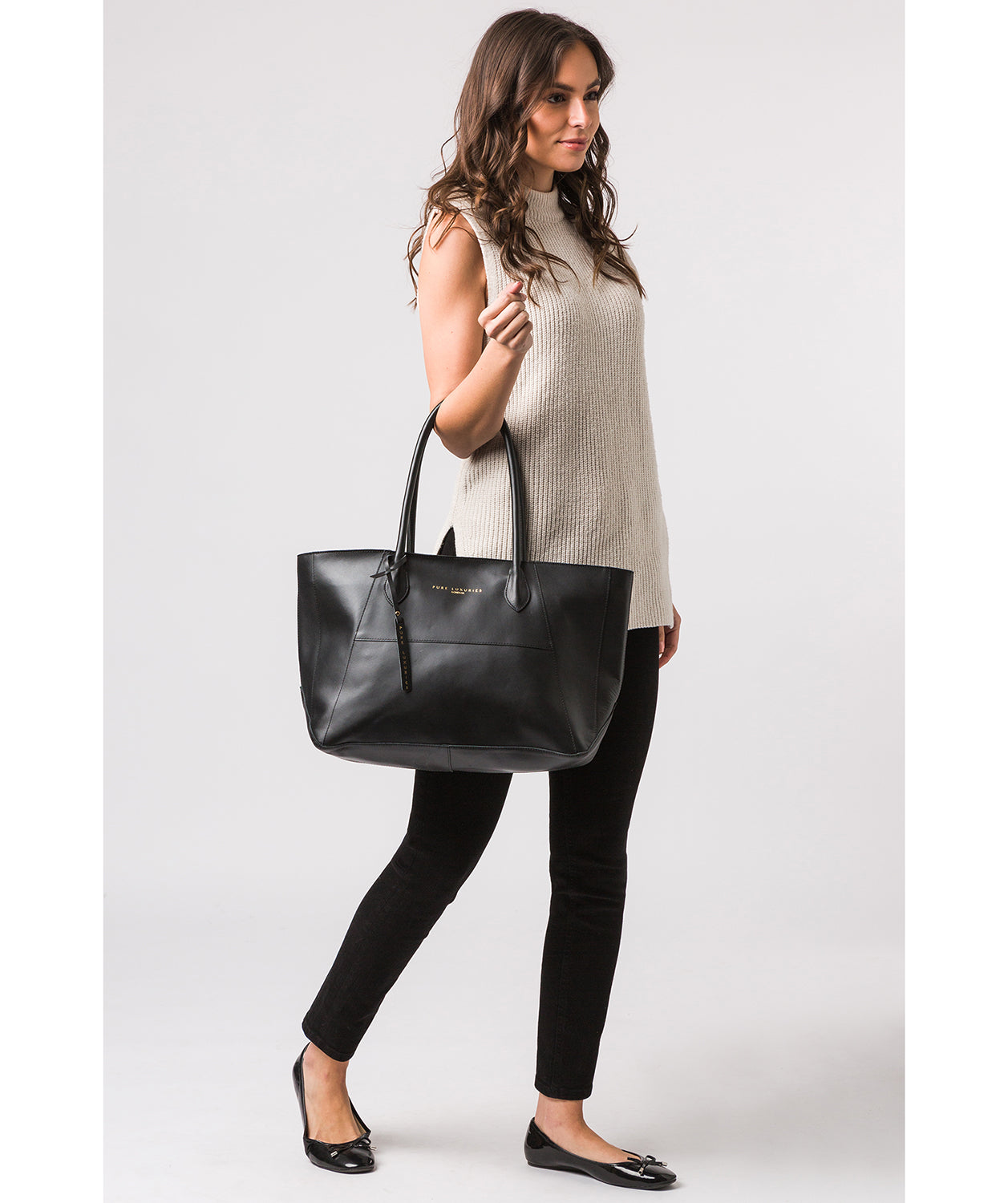'Storrington' Jet Black Vegetable-Tanned Leather Tote Bag