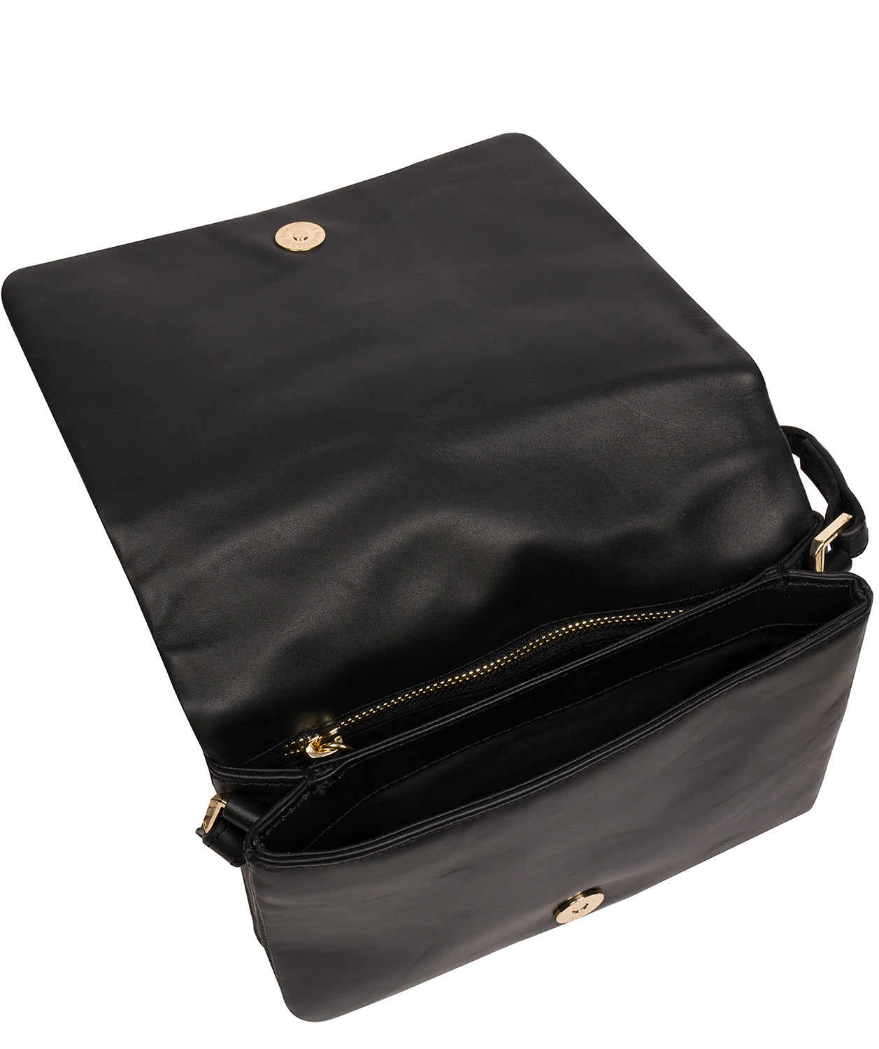 - A press stud fastened fold-over top secures the dual central compartment which includes a zipped pocket