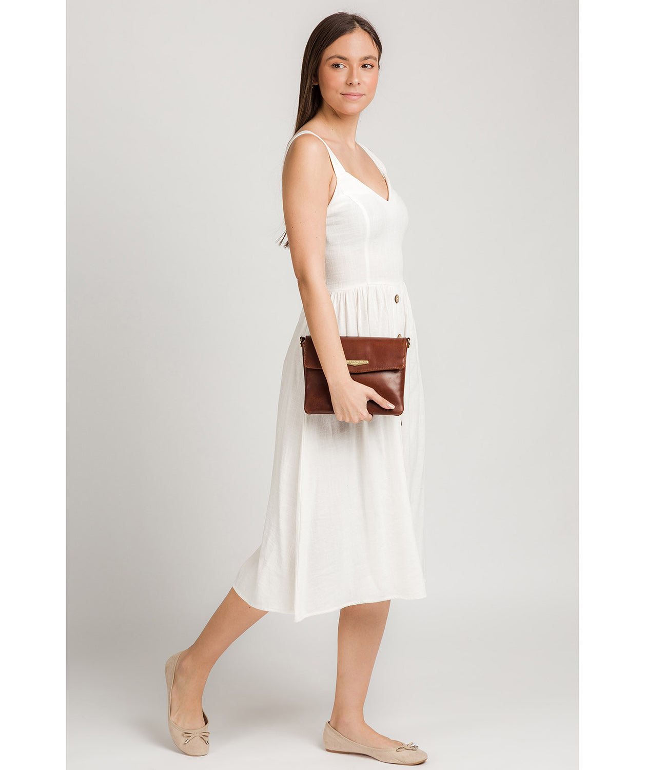 'Valeria' Italian Tan Vegetable-Tanned Leather Cross Body Clutch Bag