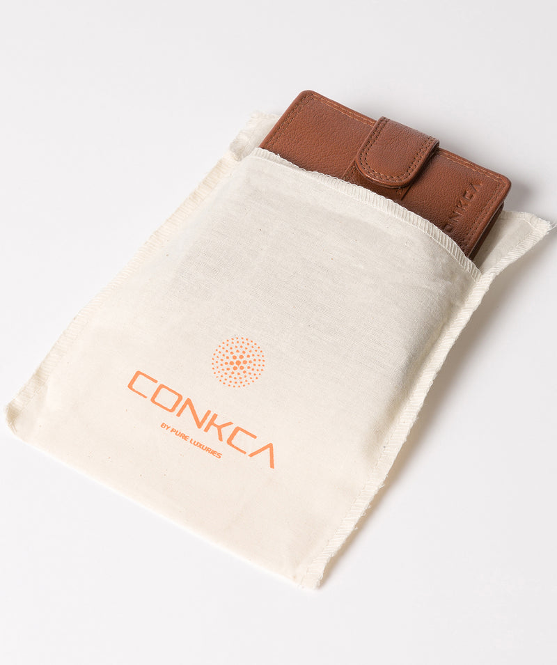 - Adorned with the signature Conkca logo on the inside and exterior of the wallet