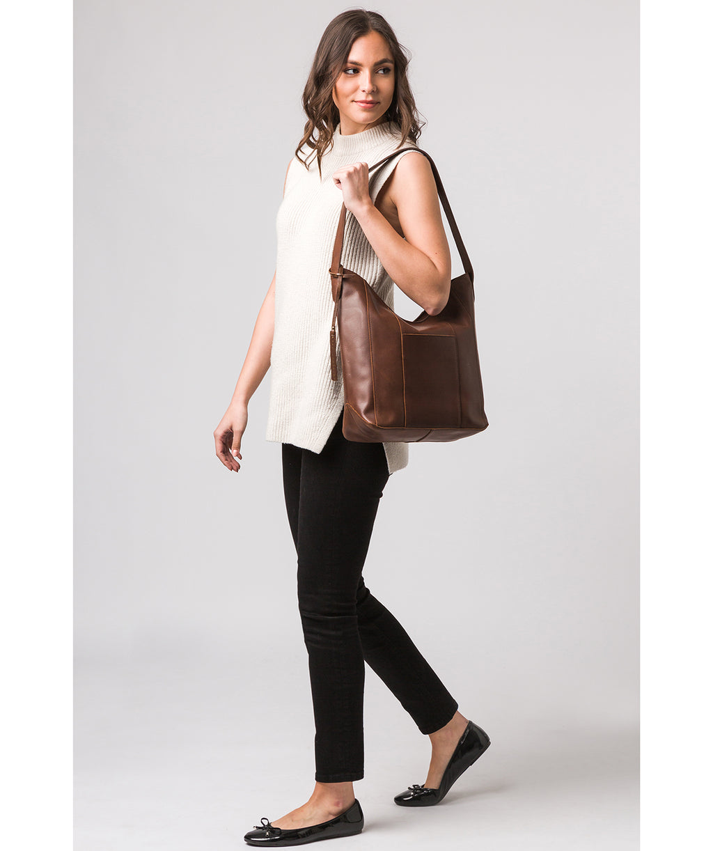 'Winchester' Ombré Chestnut Vegetable-Tanned Leather Shoulder Bag